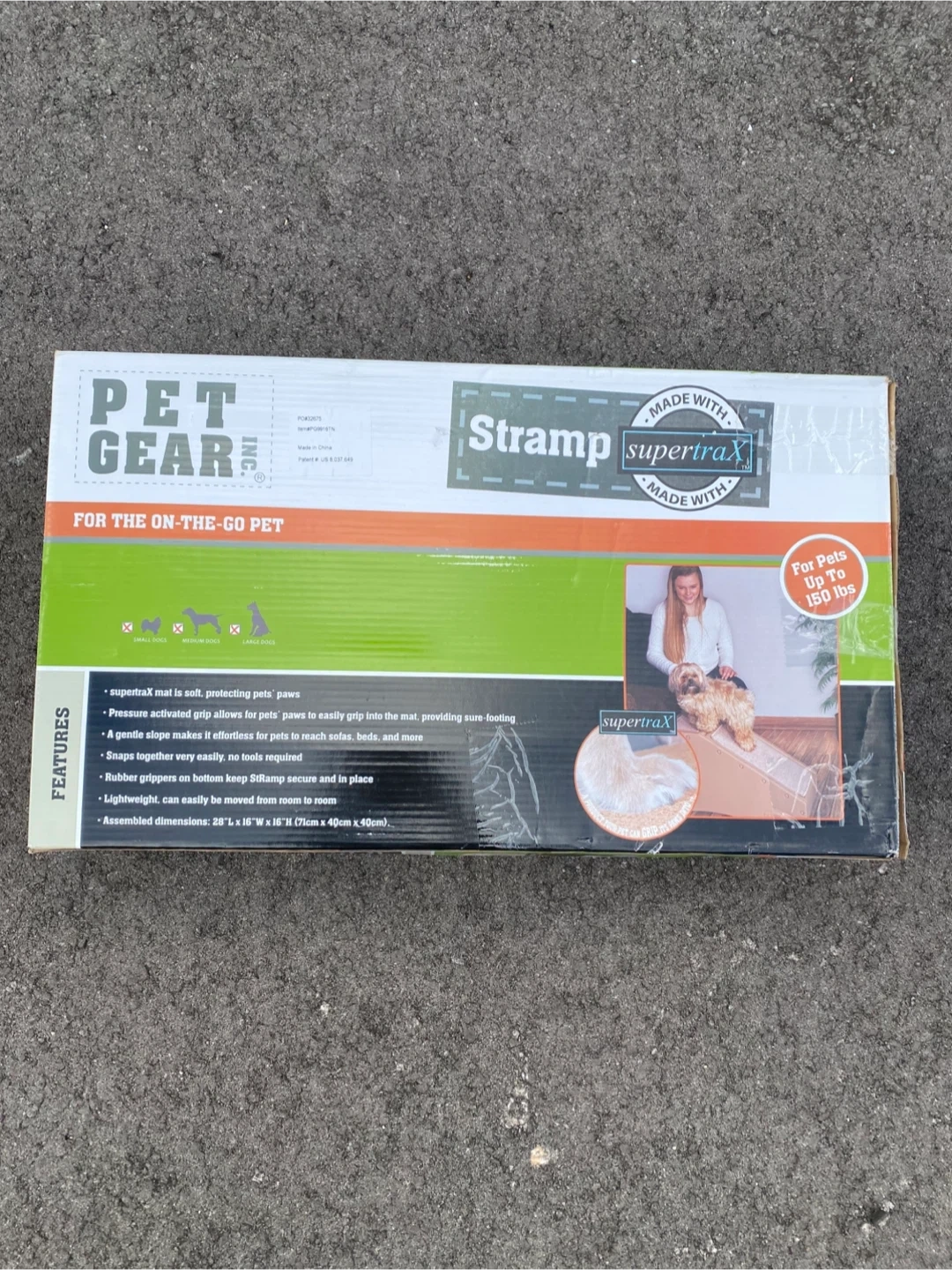 60Selling a brand new Pet Gear Stramp supertrax pet ramp! It's perfect for helping your furry friend reach sofas, beds, and more! - The supertrax mat is soft and protects your pet's paws - Pressure-activated grip allows for easy and sure footing - Gentle slope design - Snaps together easily, no tools required - Rubber grippers keep the ramp secure - Lightweight and easy to move - Assembled dimensions: 28"L x 16"W x 16"H (71cm x 40cm x 40cm)