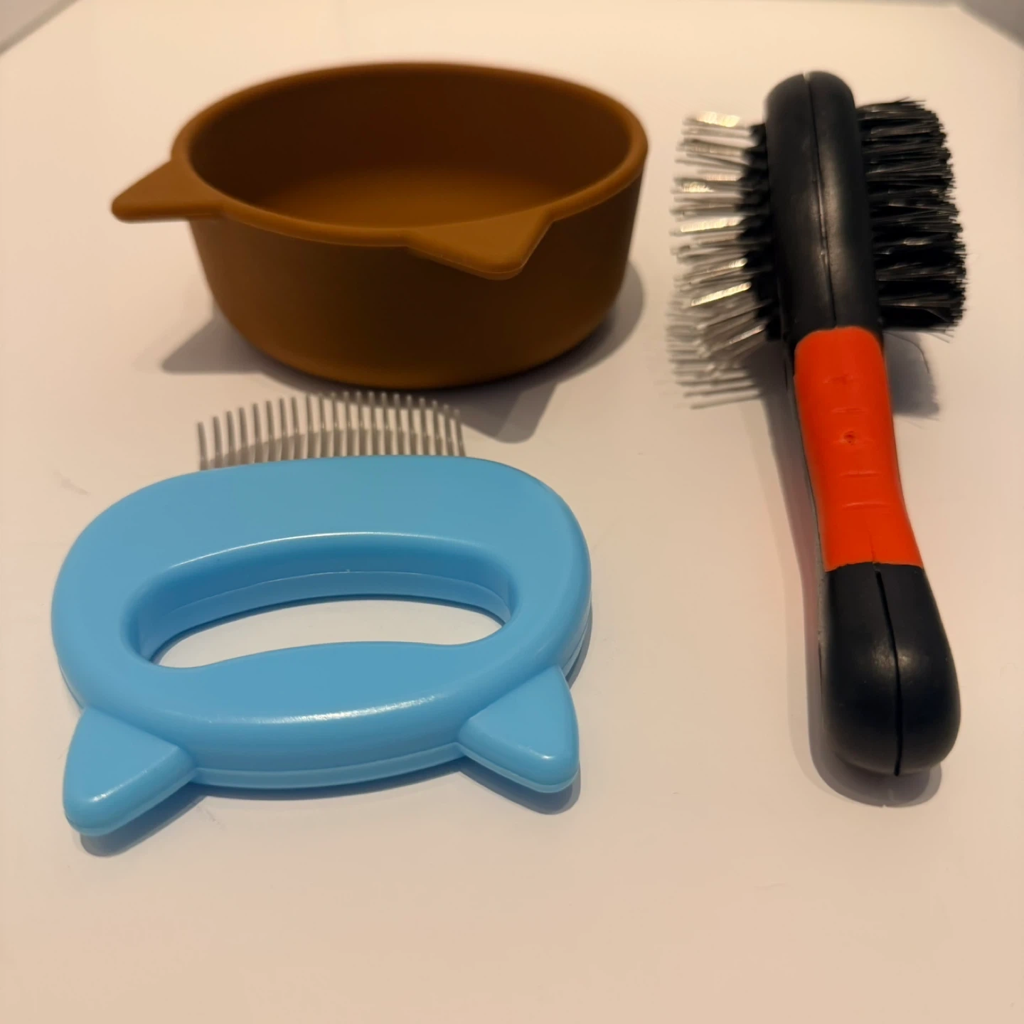 907Selling a set of pet grooming supplies! Includes a blue grooming comb, a double-sided brush, and a cute brown bowl. Perfect for keeping your furry friend looking their best *please read before reaching out* - price is fixed. Reach out only if interested. - item is first pay first serve. - pick up 5 min walk from Yonge and Bloor Station (Charles/Yonge)