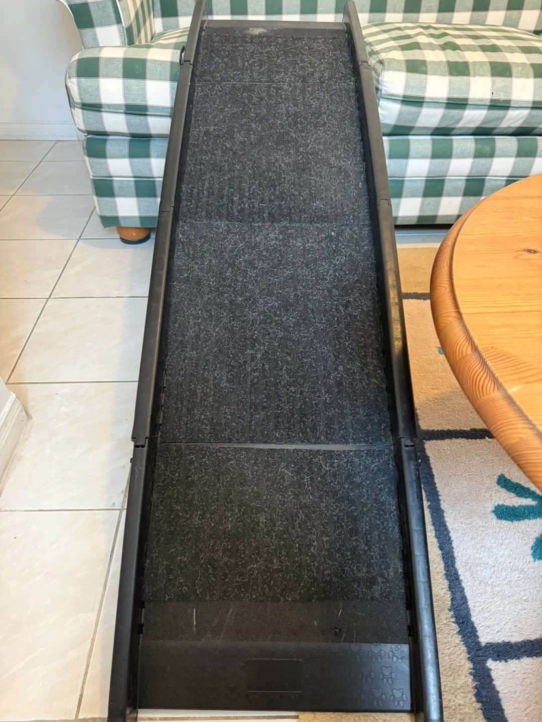 23Ramp $40Stairs, $20 Both for $50! Selling a handy pet ramp, perfect for helping your furry friend reach higher places! It's a portable, folding design, making it easy to store and transport. Great for older pets or those with mobility issues & post surgery. Only used for one month. Can be sold with soft stairs $20, see alternative listing.