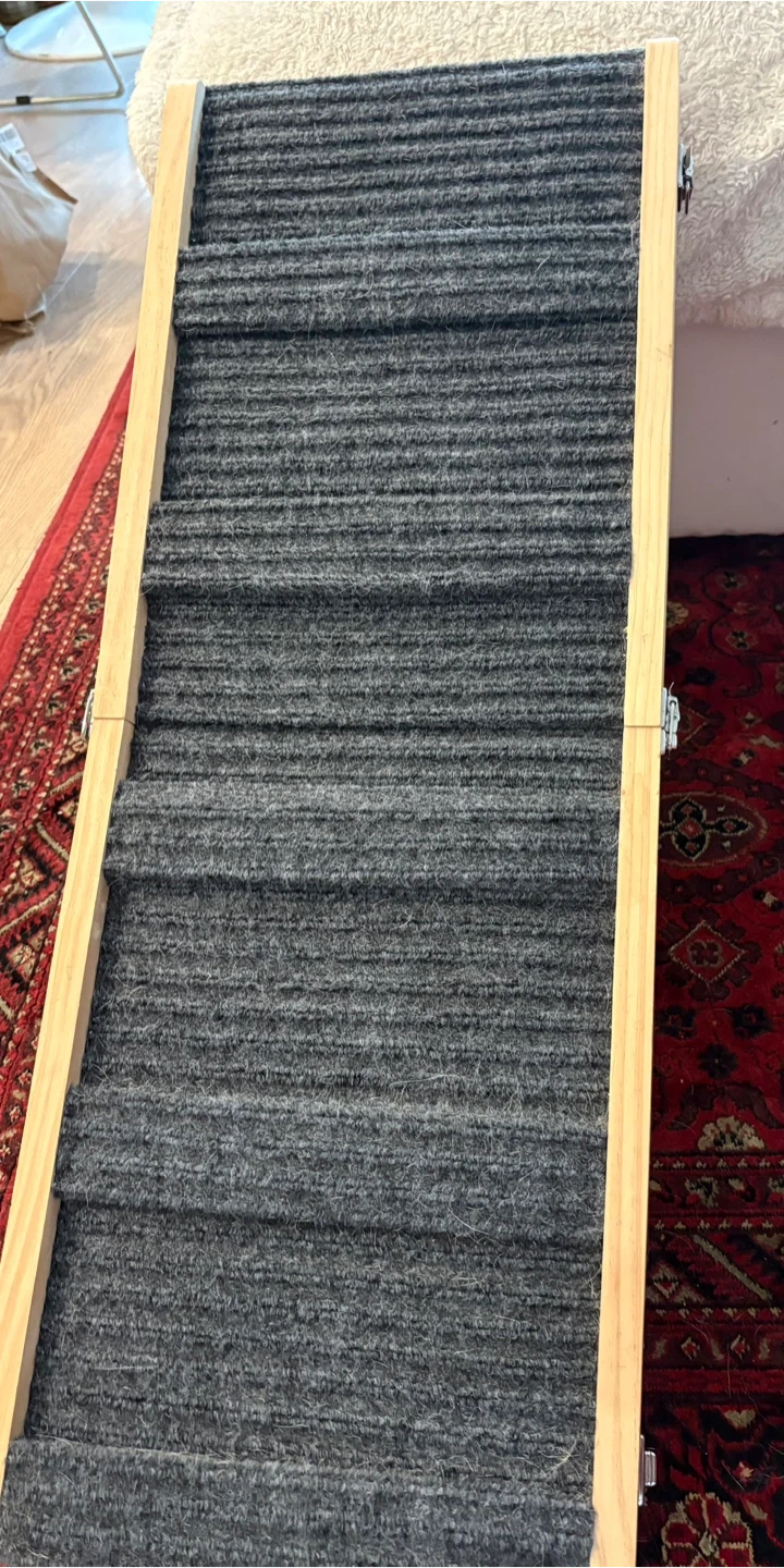 16Selling a pet ramp, perfect for helping your furry friend reach higher places! It's approximately 31 inches long and features a carpeted surface for better grip. The ramp is in great shape and ready for a new home. Max height is 19 inches for bed or couch. NO STAINS NO SMELL