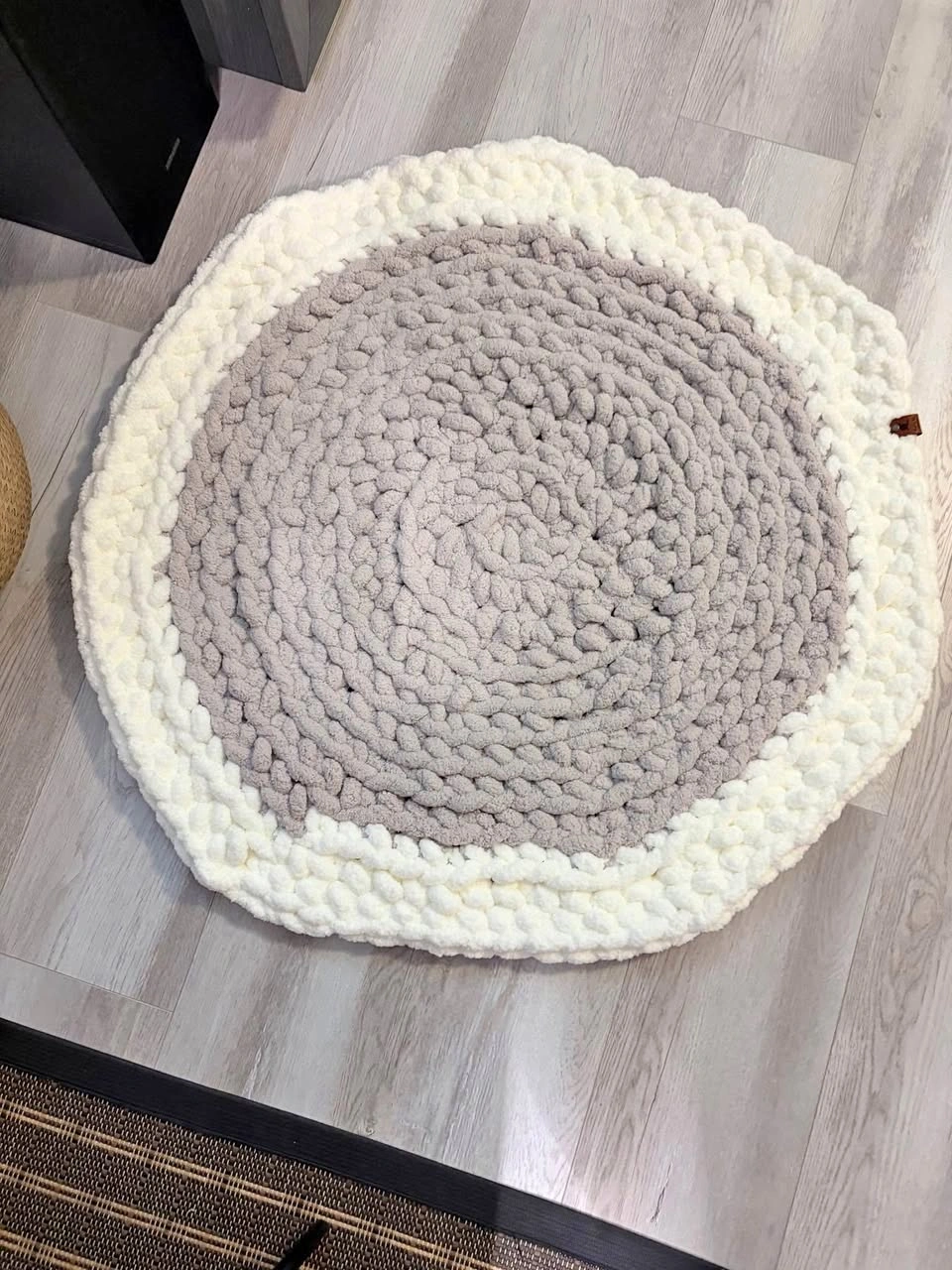 10Pet rounds are a great alternative to pet beds for your larger furry babies. 32x30 mushroom/white chunky yarn. Luxuriously plush! Can be washed & dried. Knits by Belle