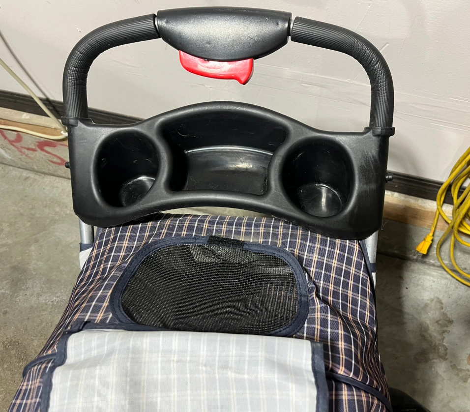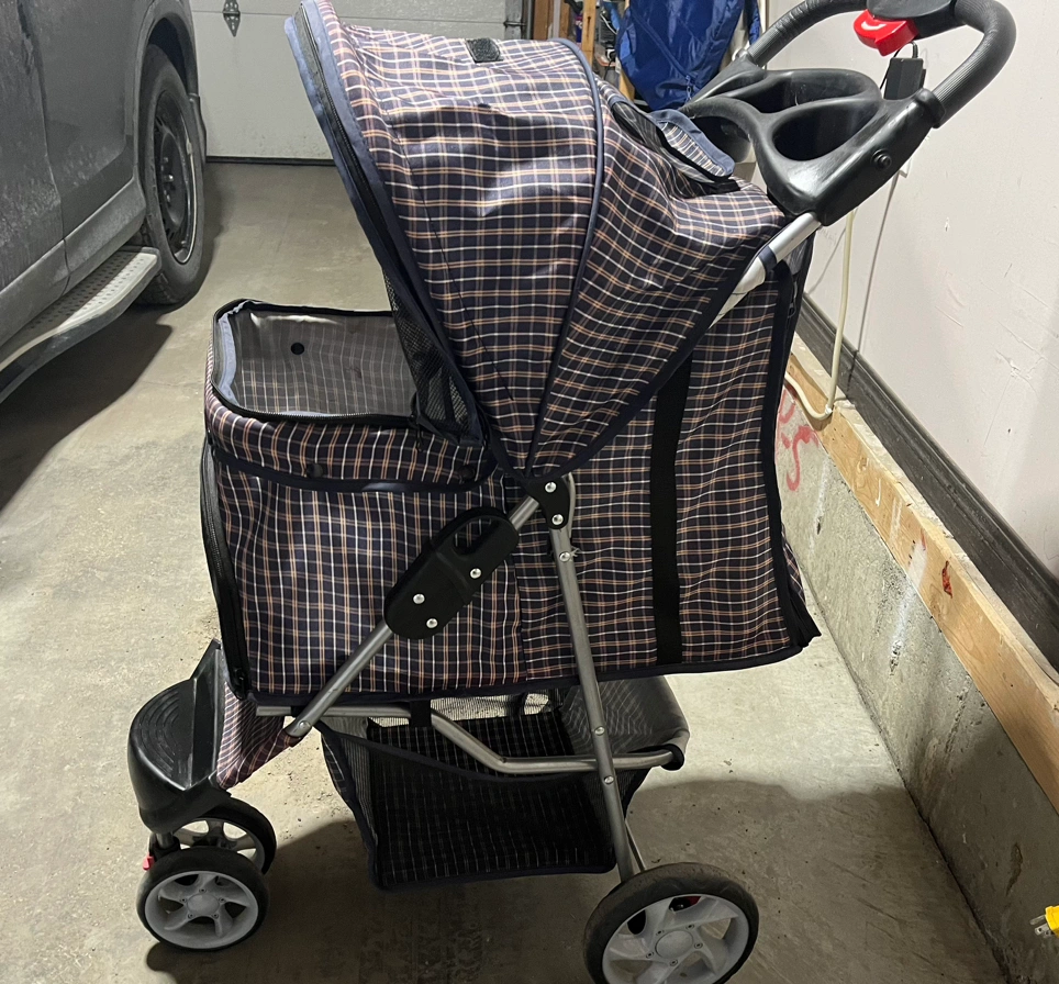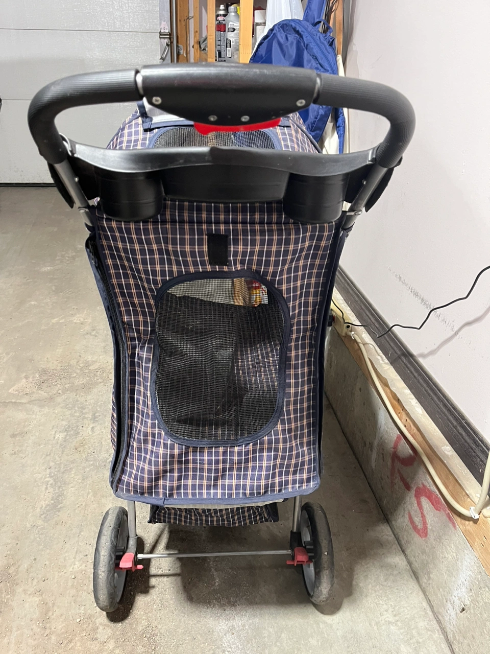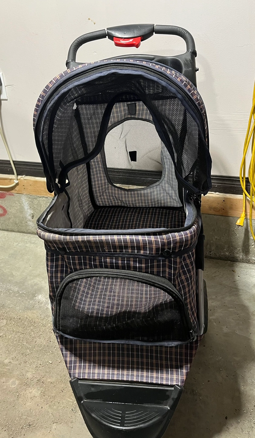 10Very good condition. 4-Wheels Foldable Pet Stroller for Small Dogs. Wide Mesh Canopy, Security Leashes, Cup Holder, Storage Basket