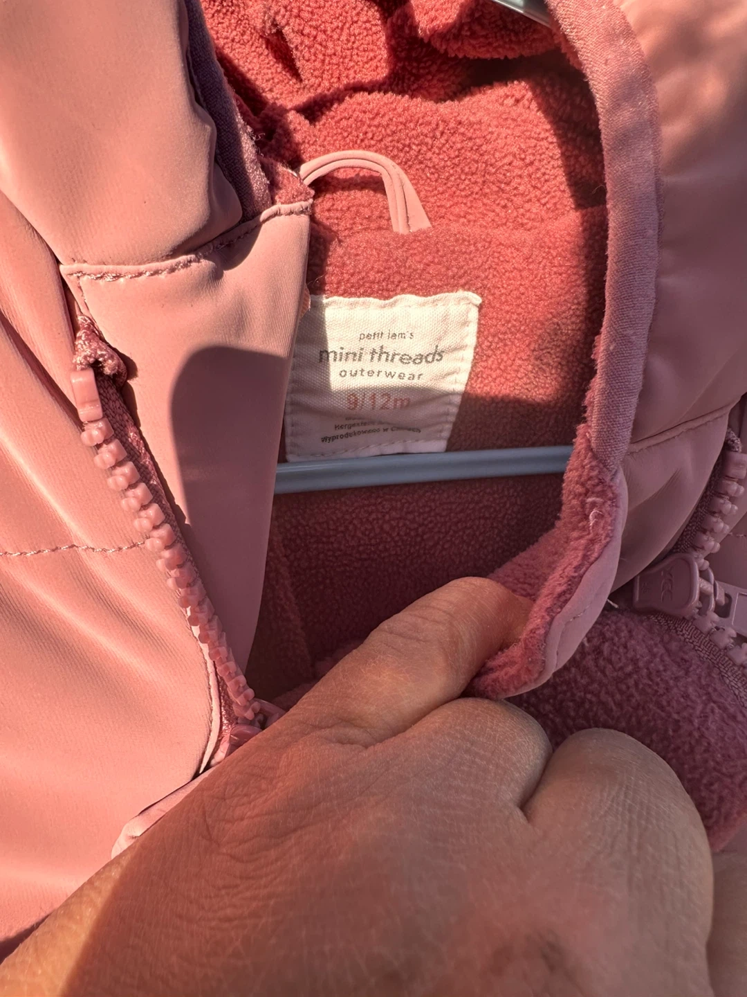 A super cute pink snowsuit from Petit Lem! It's sized 9-12 months and is perfect for keeping your little one warm and cozy this winter. It's in great condition and ready for a new home!