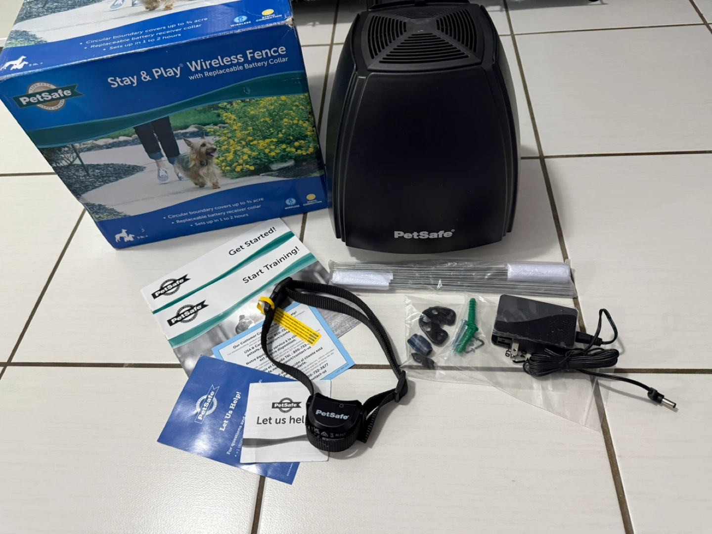 PetSafe Stay & Play Wireless Fence with Replaceable Battery Collar β NEW, Open Box πΆπ¦ Keep your dog safe and give them freedom to play! Selling PetSafe Stay & Play Wireless Fence system β all items are brand new, never used. Only the box was opened to check contents. β¨ Features: β’ Covers up to 3/4 acre (3000 mΒ²) β’ Quick setup in 1β2 hours β’ Waterproof, adjustable collar with replaceable battery β’ 5 correction levels + tone alert β’ Add extra collars for multiple pets β’ Portable design β perfect for yard, camping, vacation homes π¦ Full set included (transmitter, collar, power adapter, flags, manuals, accessories). Retail price on Amazon: $425.77 π² Price: 270 CAD π Pickup in Waterloo π Perfect choice for pet owners who want safety + flexibility.