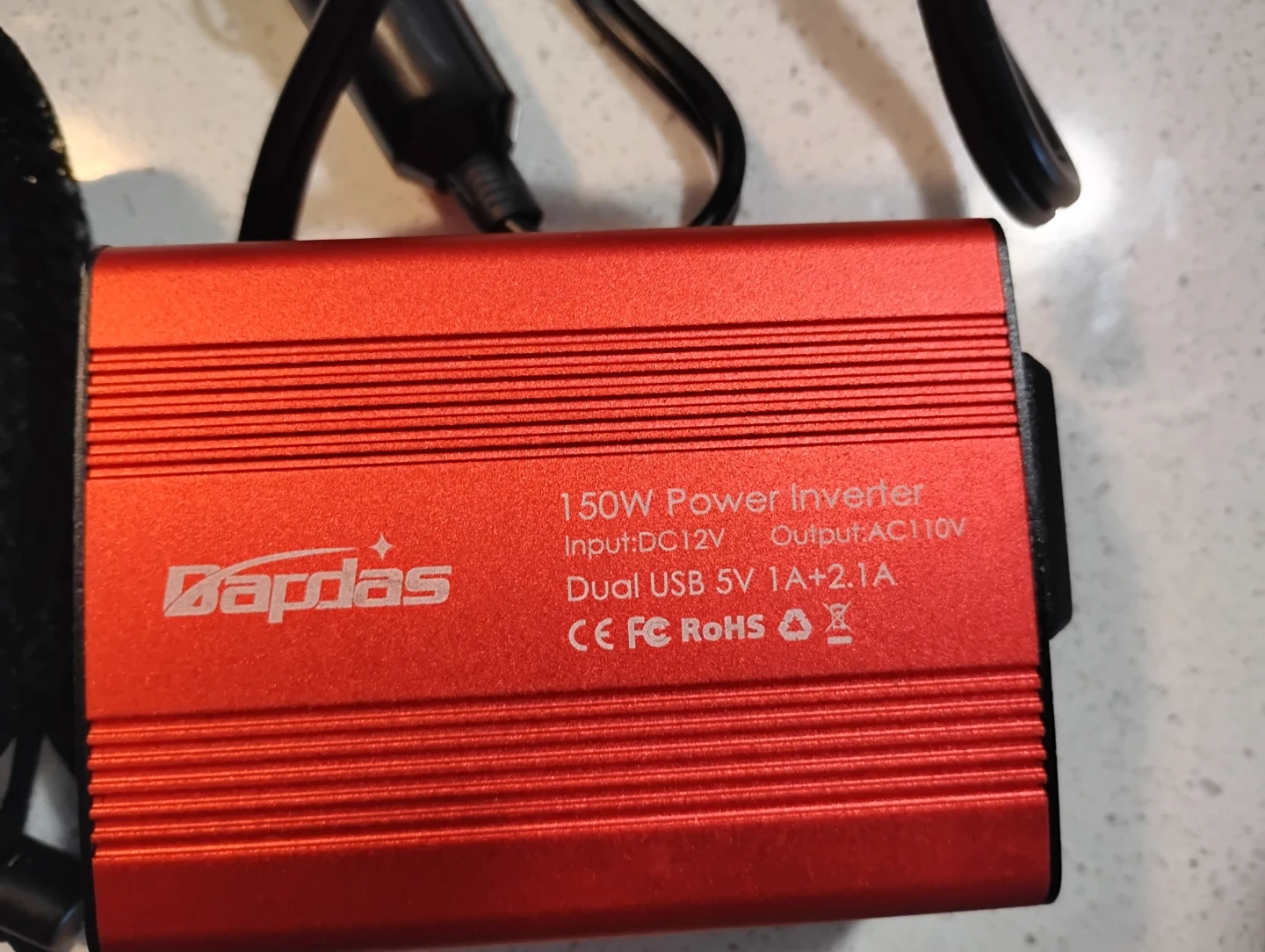 Comes with dual USB ports, one 1A and one 2.1A. Includes a standard AC outlet. Perfect for charging devices on the go.