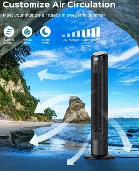 Model: Dreo DR-HTF003 Cruiser Pro Tower Fan (90° Oscillation, Black)
