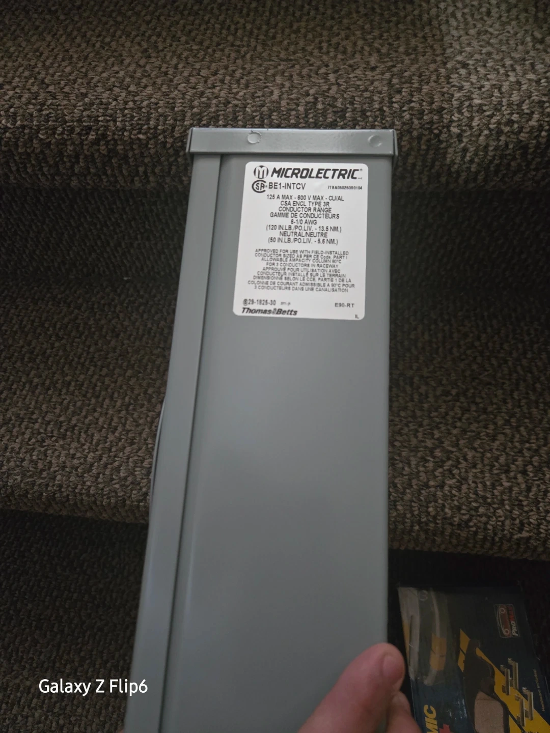 This is a MICROLECTRIC SE-BE1-INTCV meter socket. It's rated for 200 Amp, 600 Volt, 3 Phase. It's also CSA approved and features a heavy-duty steel enclosure.