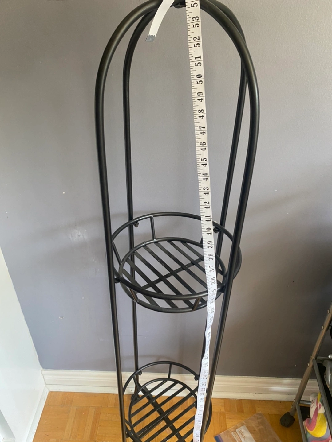 Here's a black metal plant stand, perfect for adding some height and style to your plants! It stands about 54 inches tall, offering plenty of space for your favourite greenery