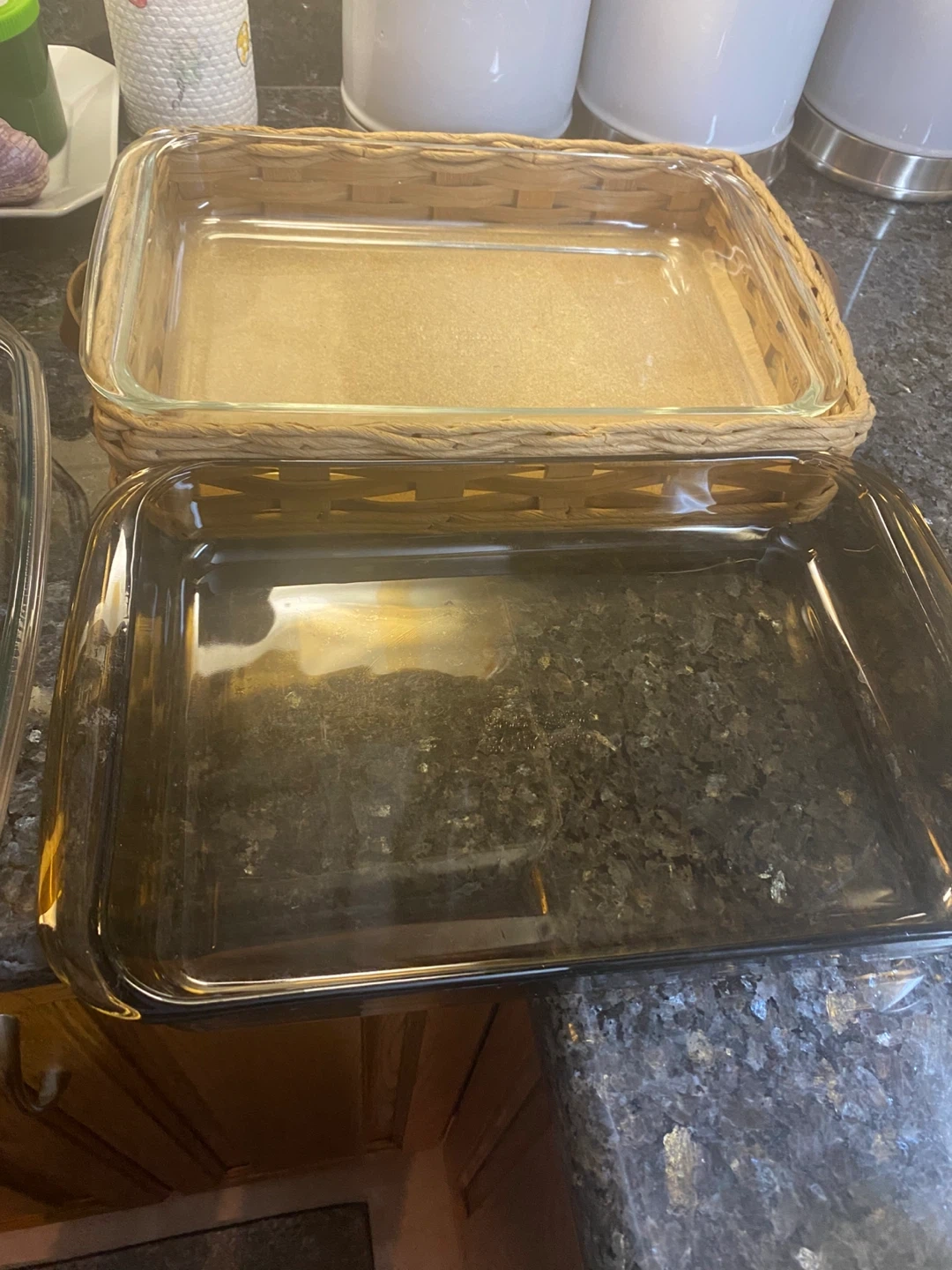 Selling a few glass baking dishes. They're in good condition and ready for your next baking project! One is a clear glass and the other is a tinted brown colour.