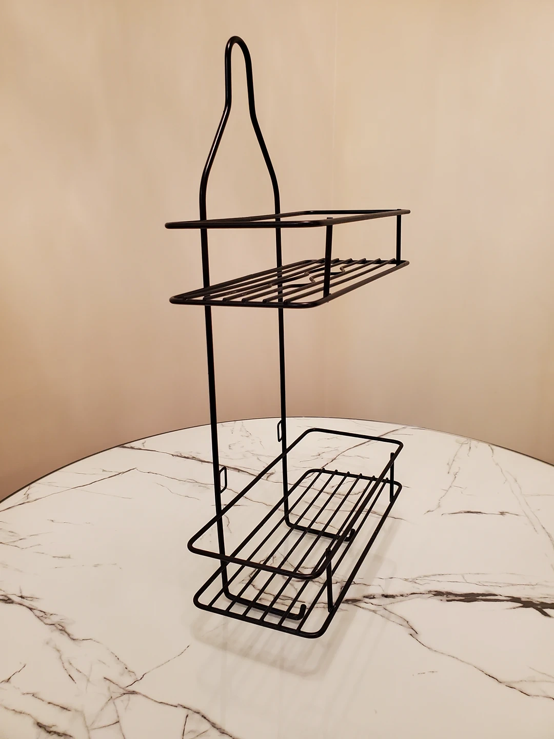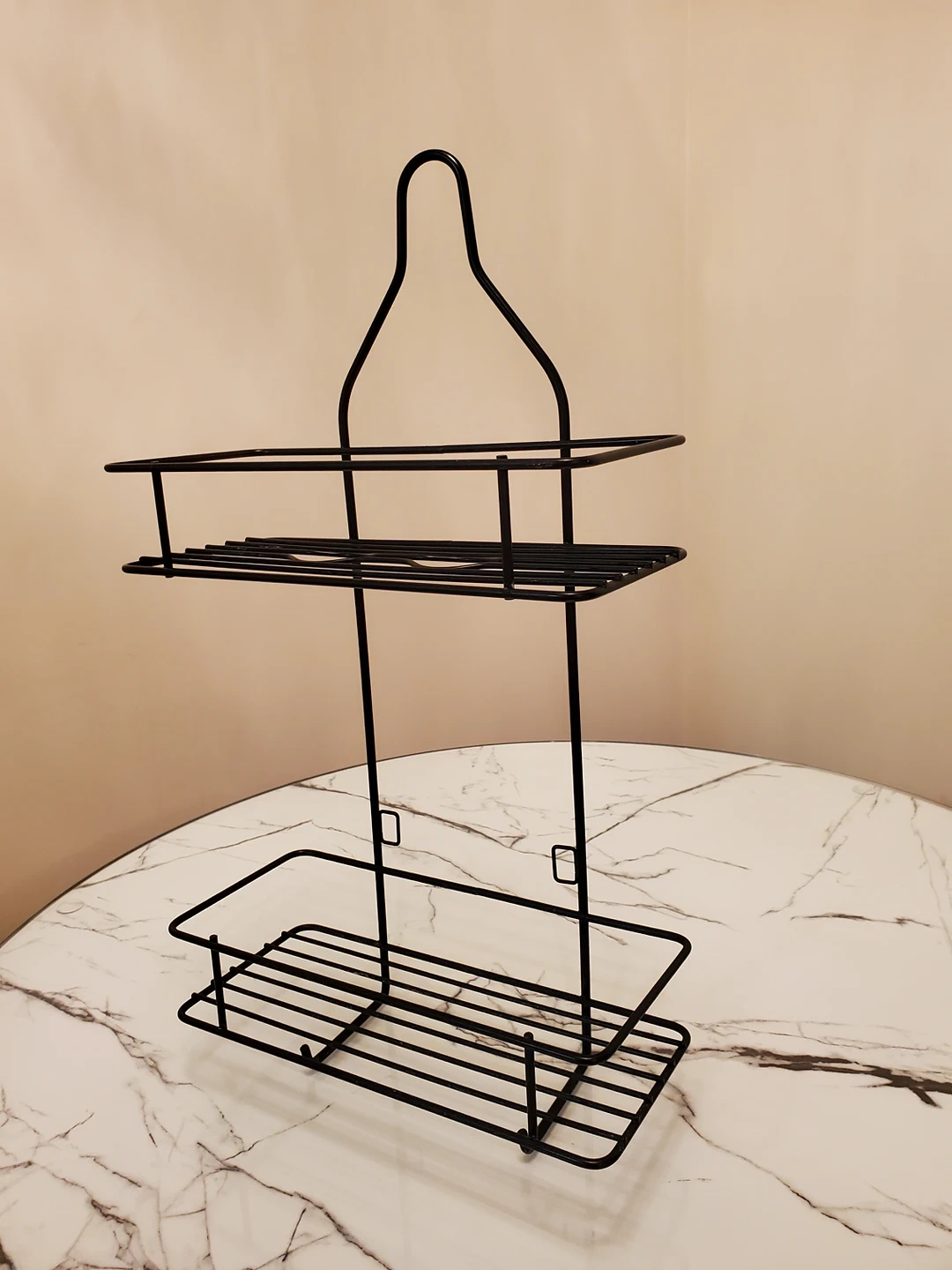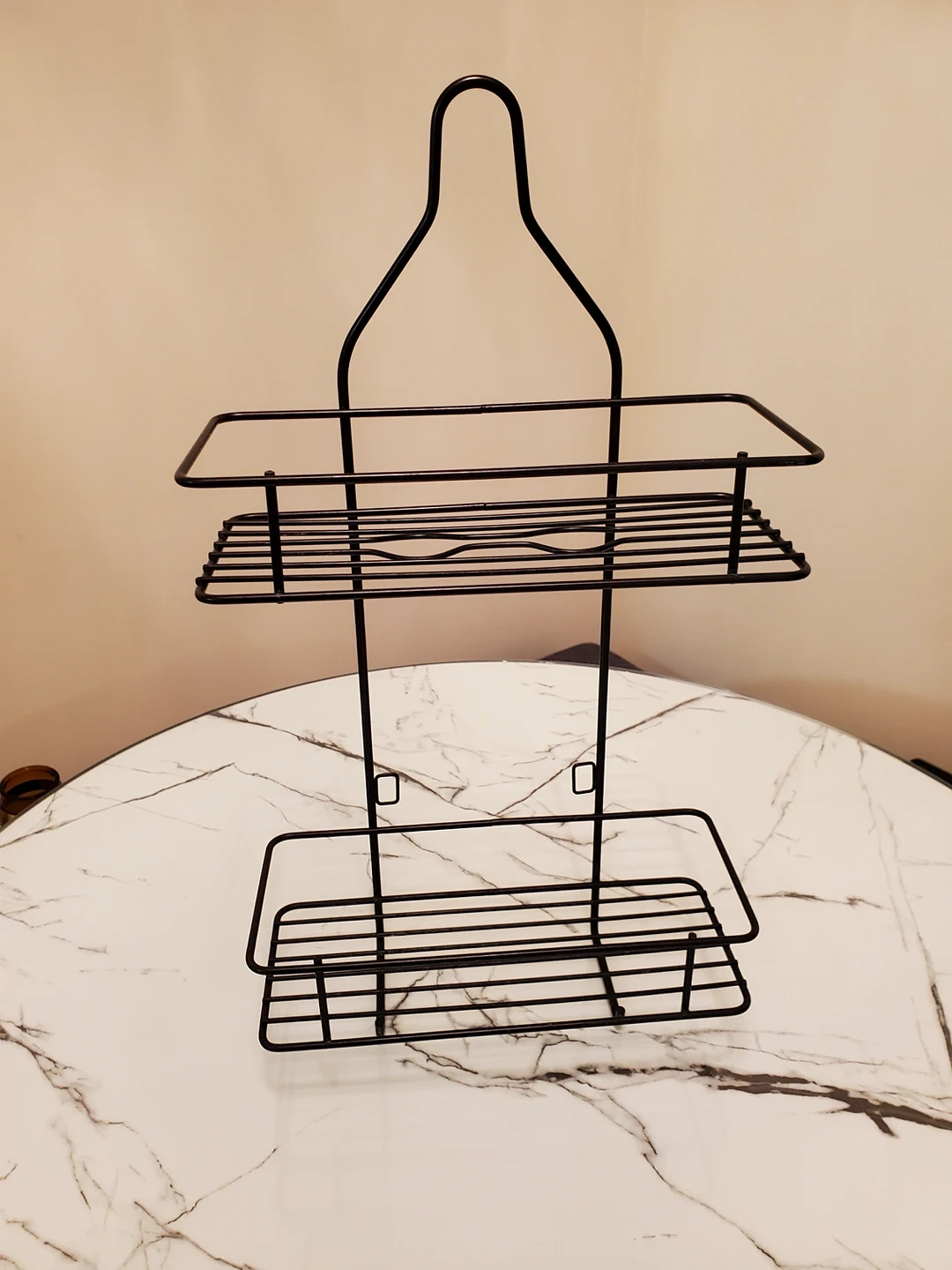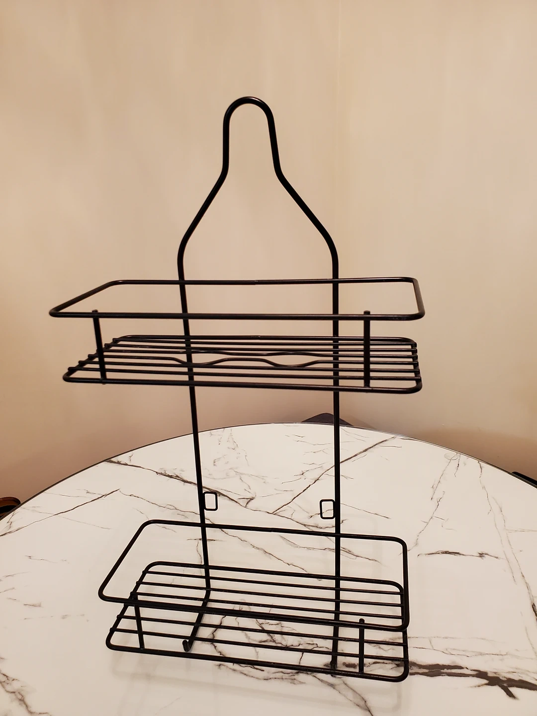 New-2 tier Shower Shelf Caddy with hanging hooks, (bought from Bed Bath & Beyond, did not fit because my Shower head is uniquely shaped-threw out box so I could not return)