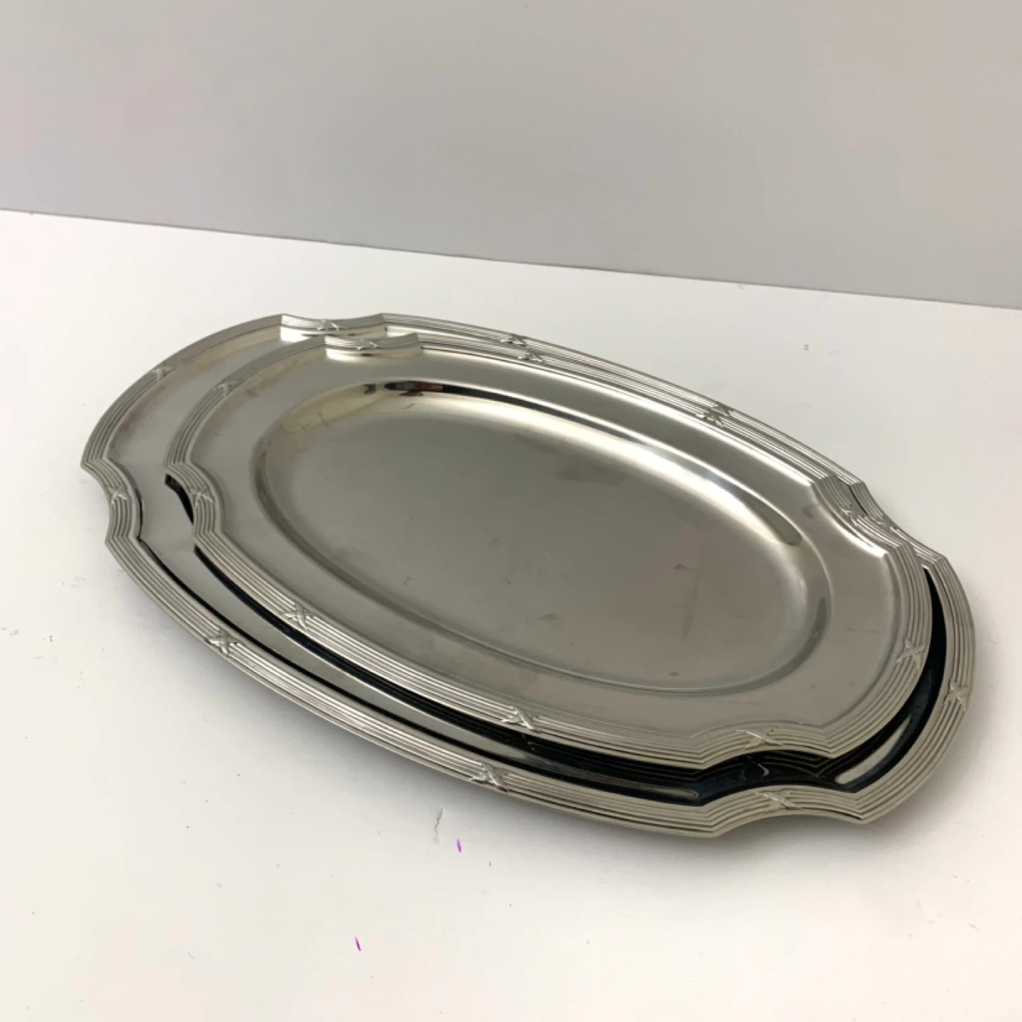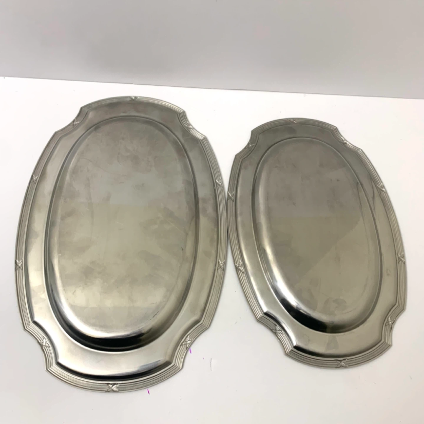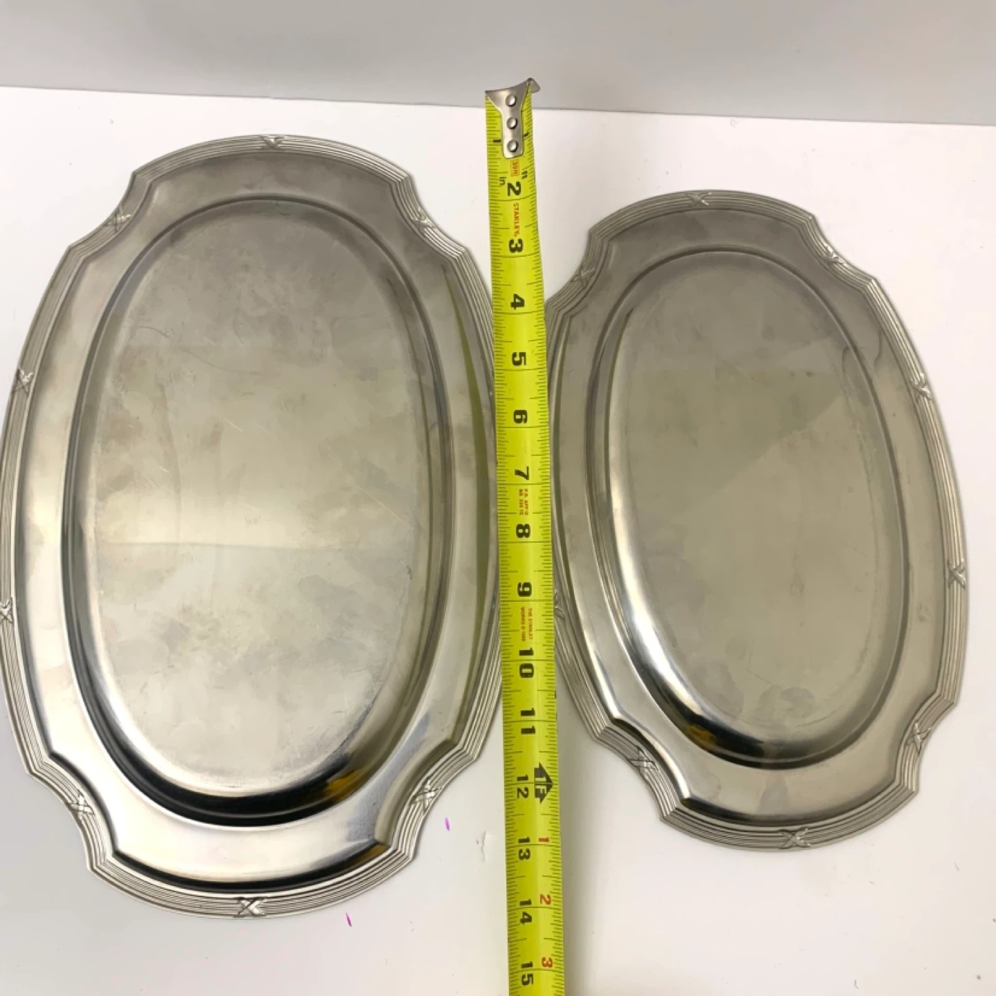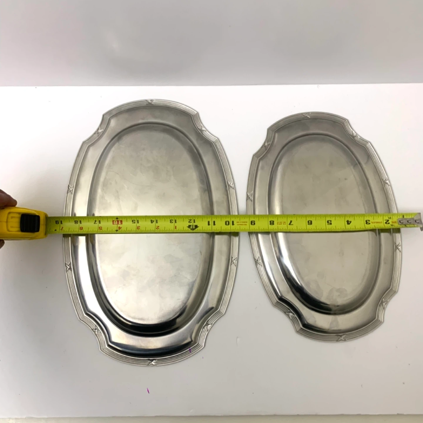 Serving Trays Set 2 Metal Silver Tone Platters Kitchen Decor