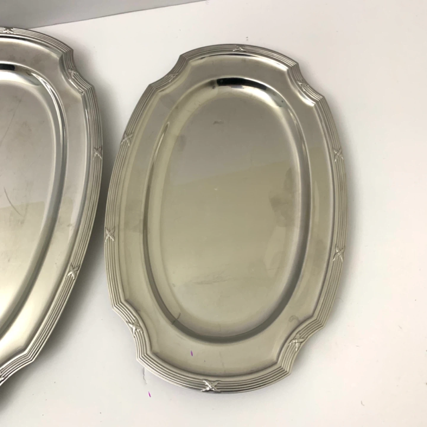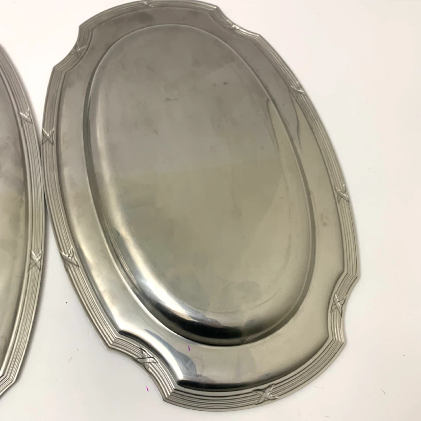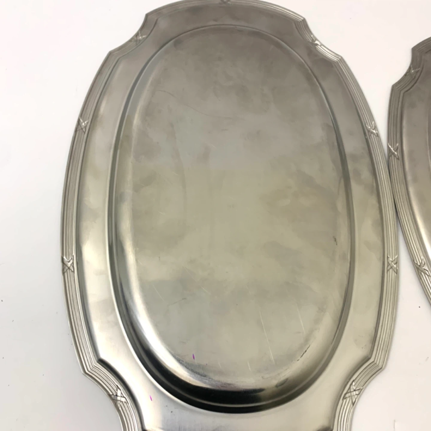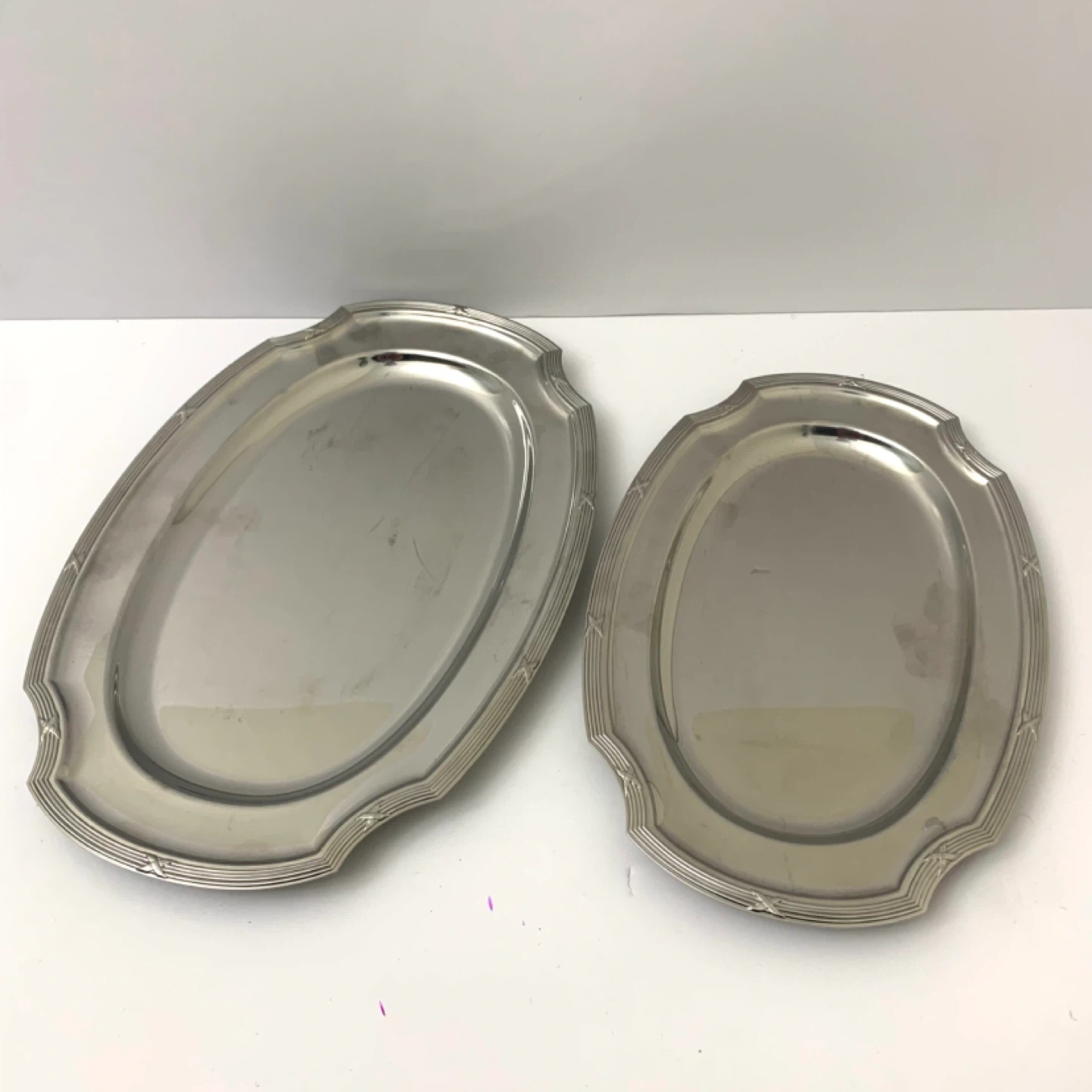 Serving Trays Set 2 Metal Silver Tone Platters Kitchen Decor