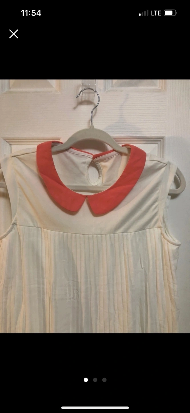 Here's a cute white sleeveless top featuring a coral-coloured collar! It's in great condition and ready for a new home