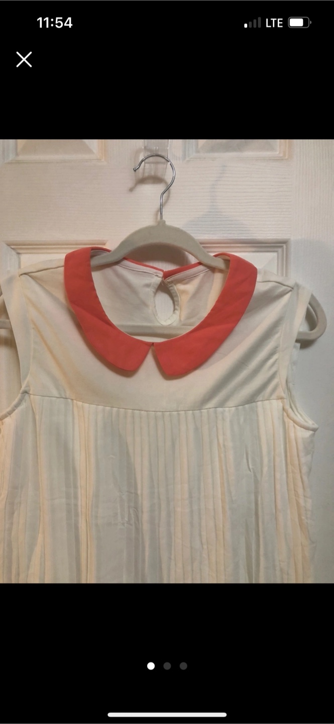 Here's a cute white sleeveless top featuring a coral-coloured collar! It's in great condition and ready for a new home