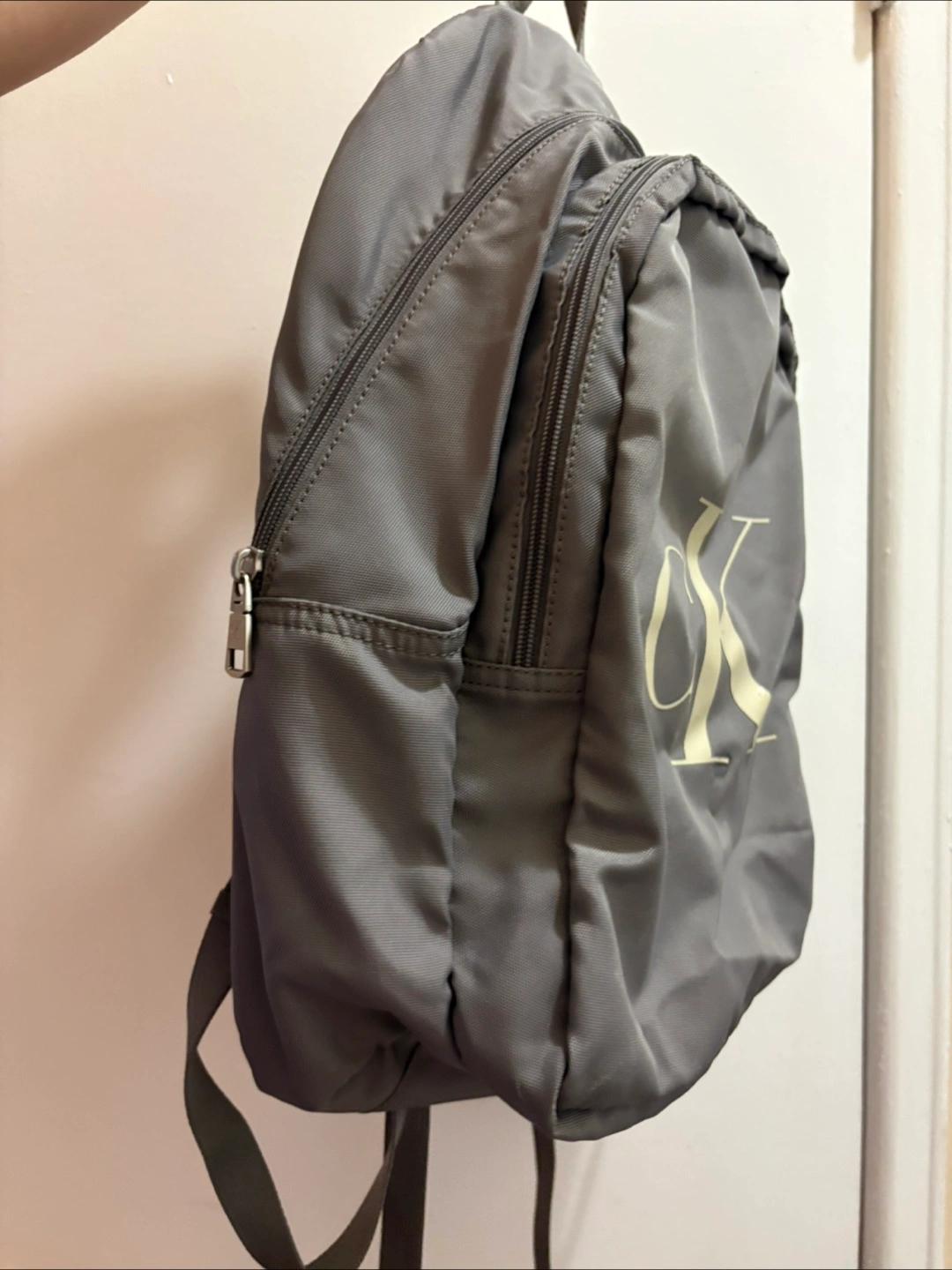 Here's a Calvin Klein backpack in a stylish grey colour! It's perfect for everyday use, whether you're heading to school, work, or just out and about. It's in great condition and ready for a new home!