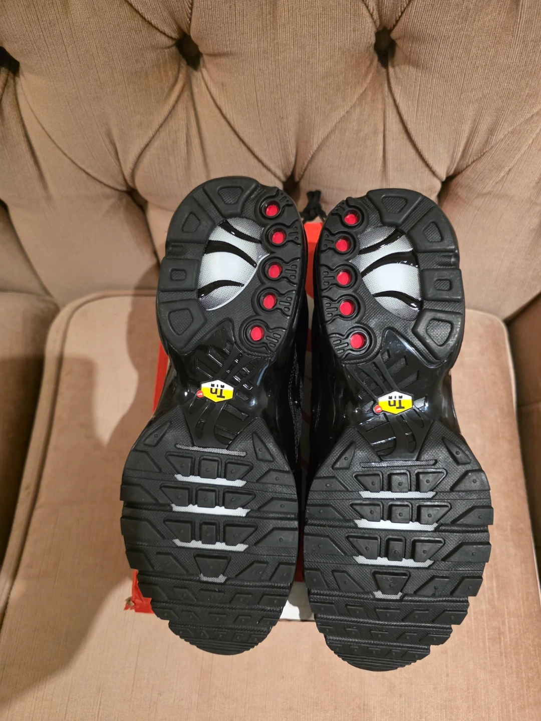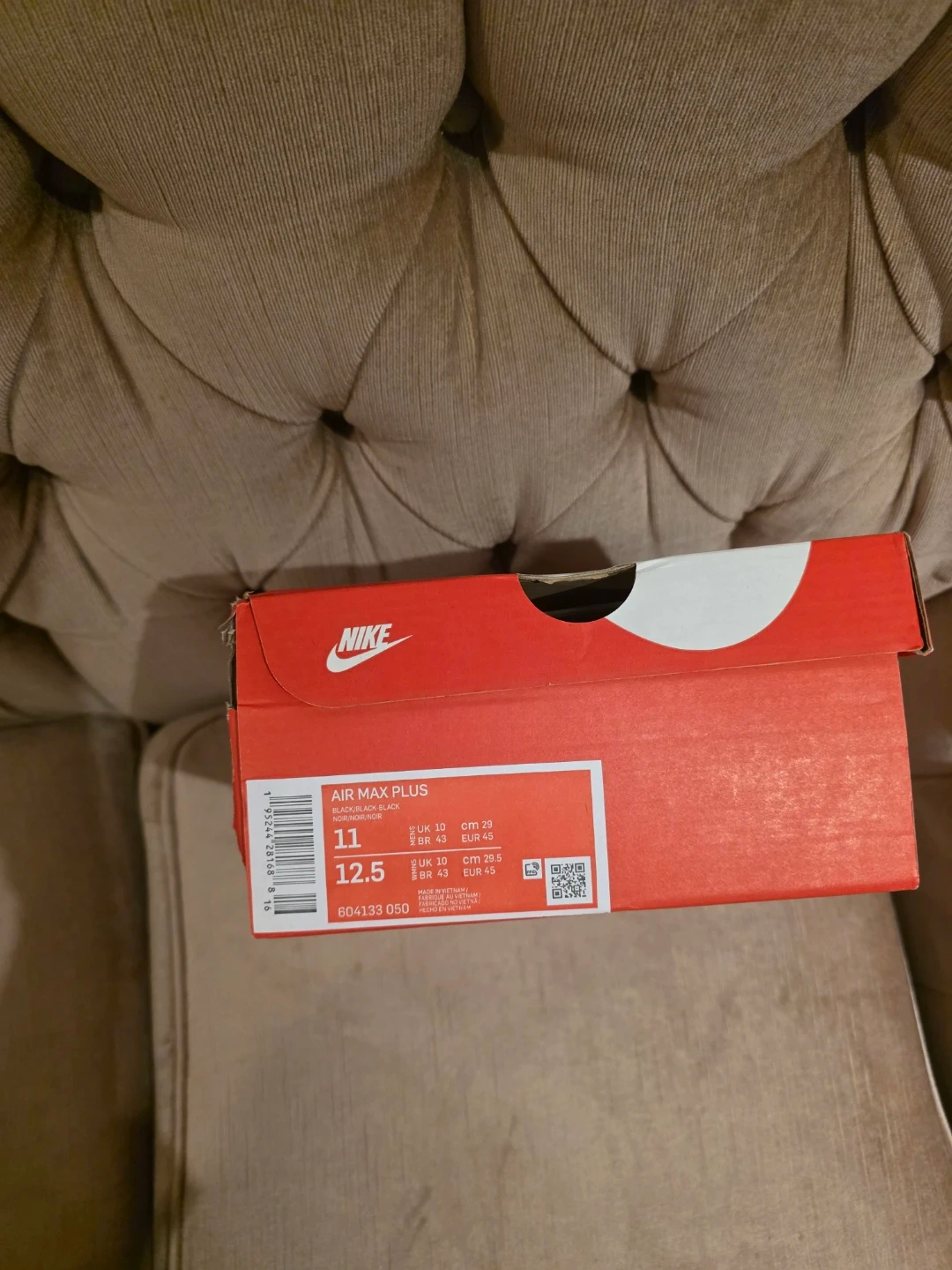 These are Nike Air Max Plus sneakers in black. They come in the original box. The shoes are a size 11 US. Great for everyday wear!