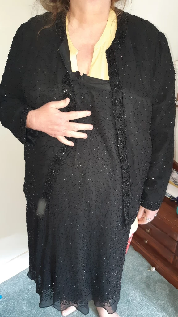 Beautiful black jacket. and skirt. Size 1X. Intricate beaded detailing. 100% polyester. Made in India. it looks beautiful on.