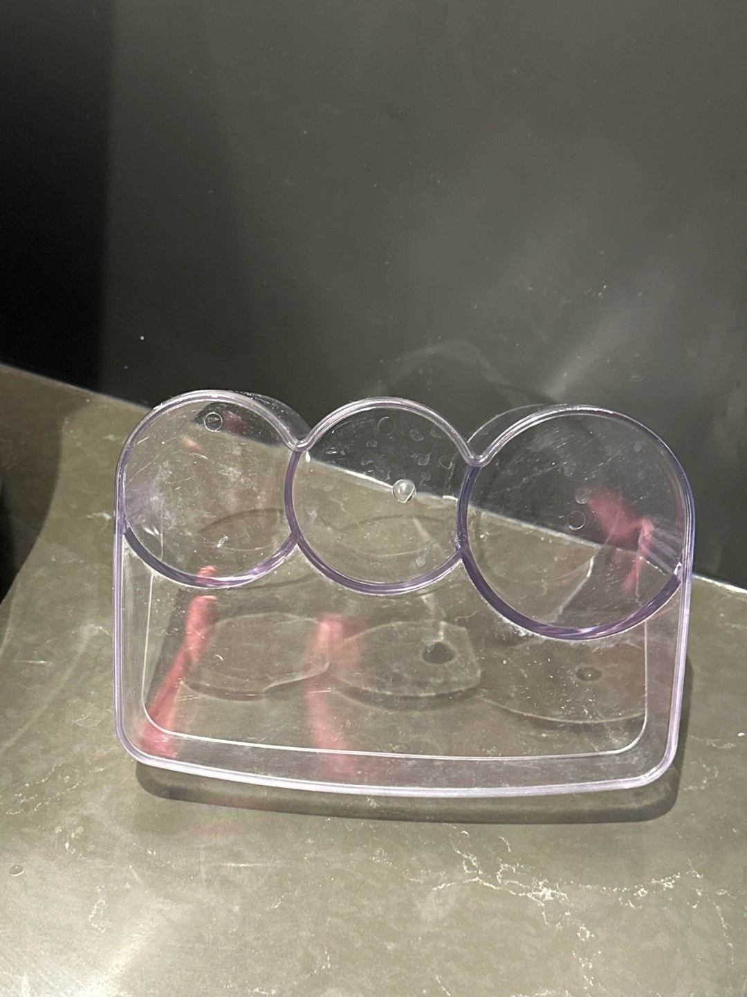 Three-section organizer with a clear base. Perfect for storing makeup brushes, pens, or other small items.