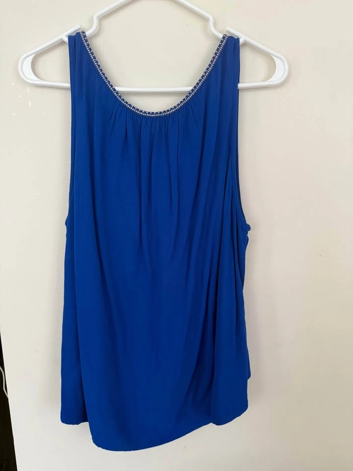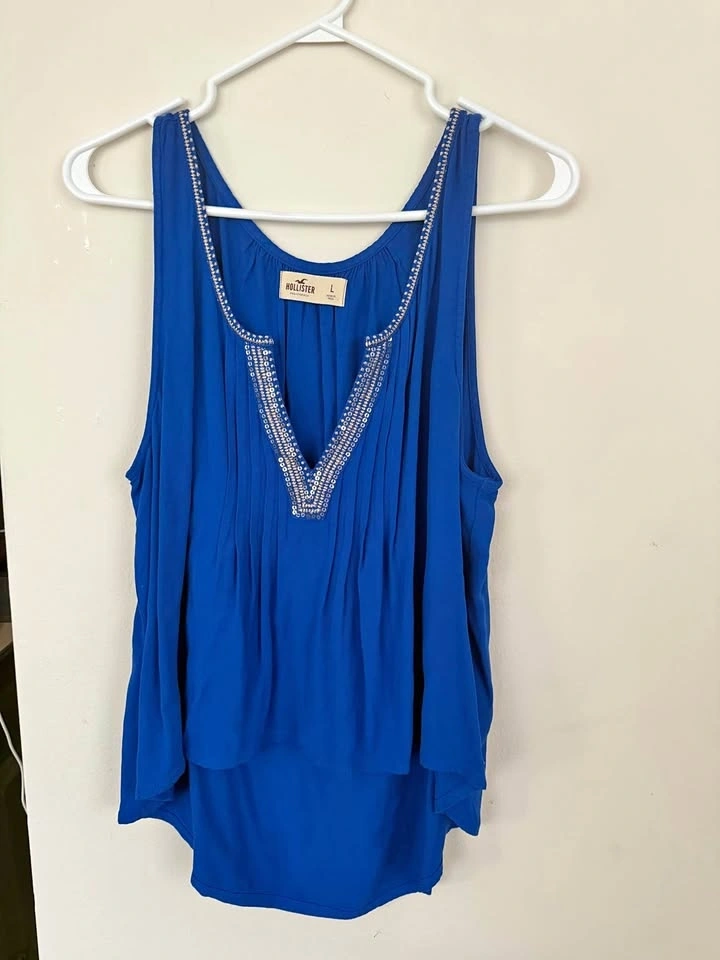 Royal blue V-neck top from Hollister, embellished with sequin trim, size large.