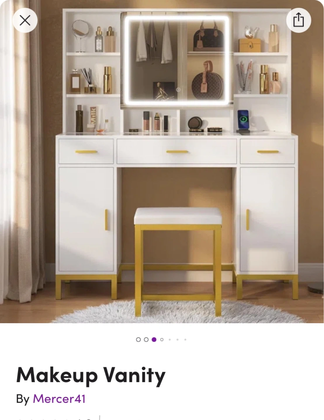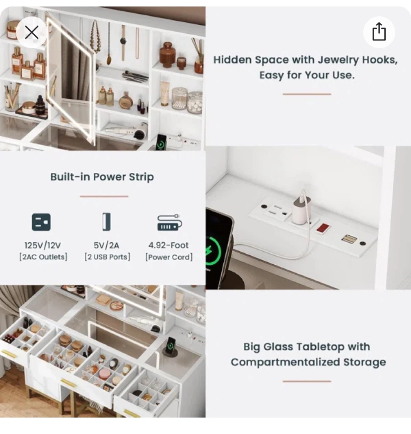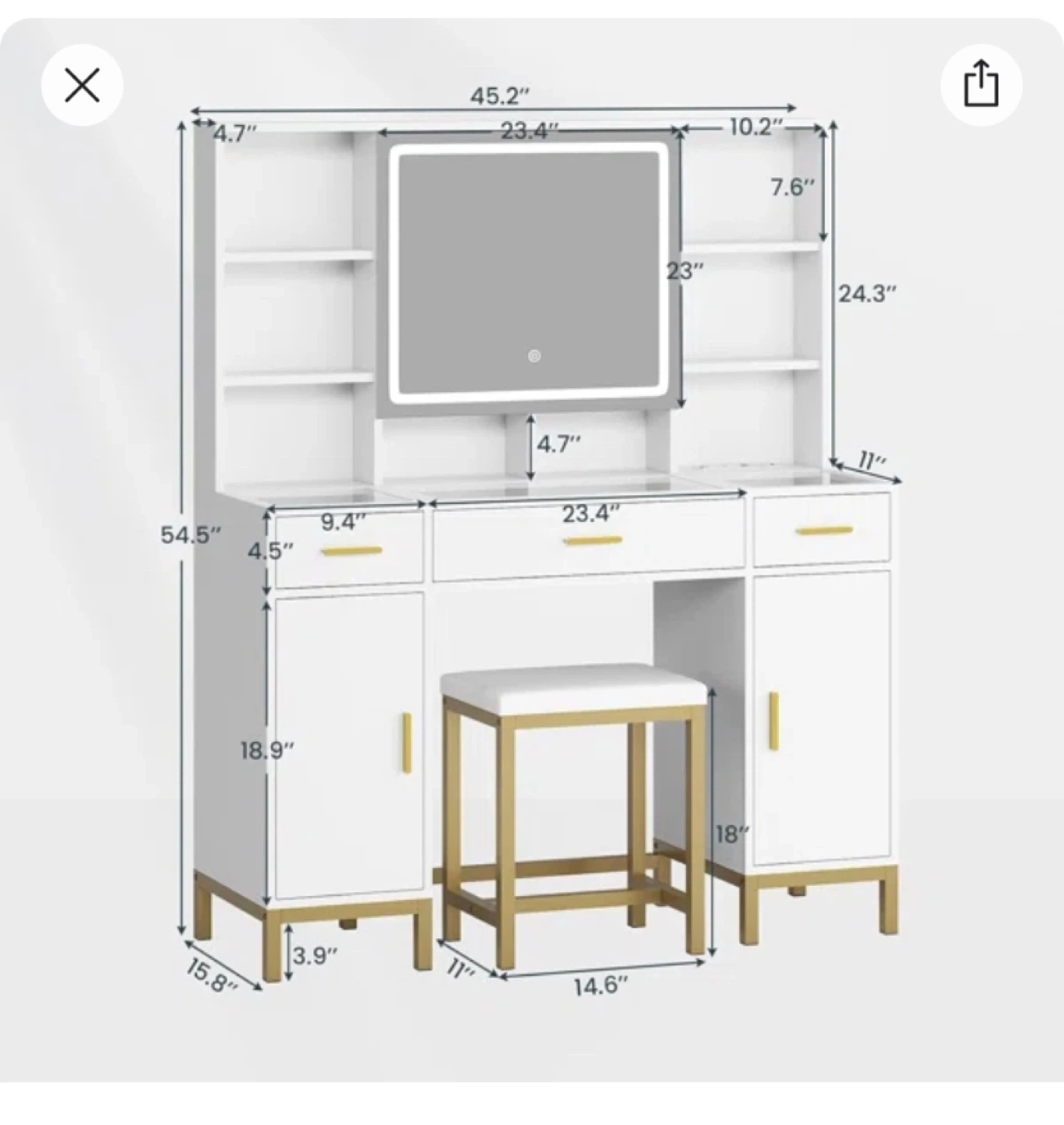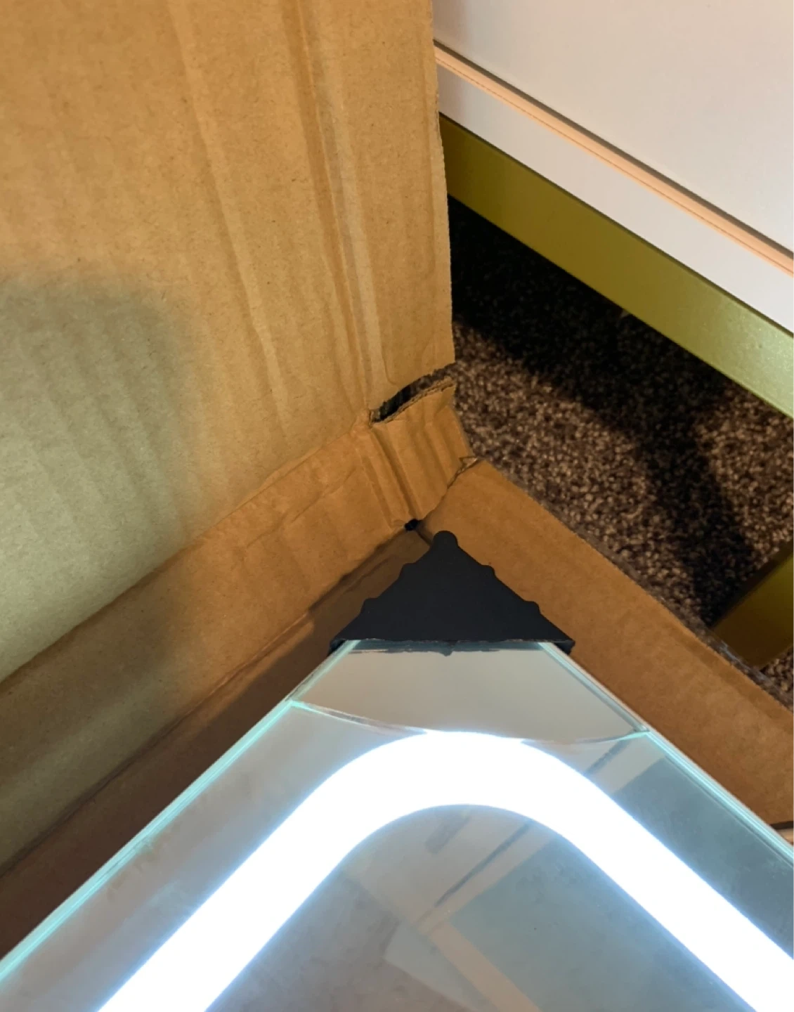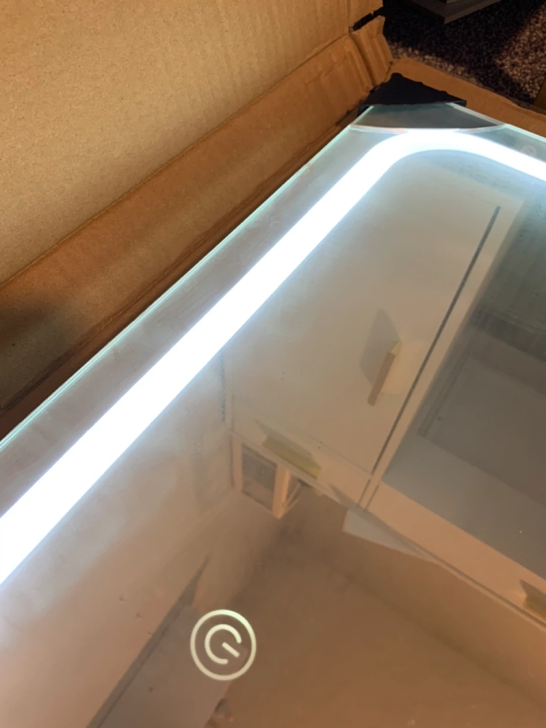 * Note: The mirror has a cosmetic flaw where one corner came cracked. As you can see from the photos, the mirror fully functions and lights up!