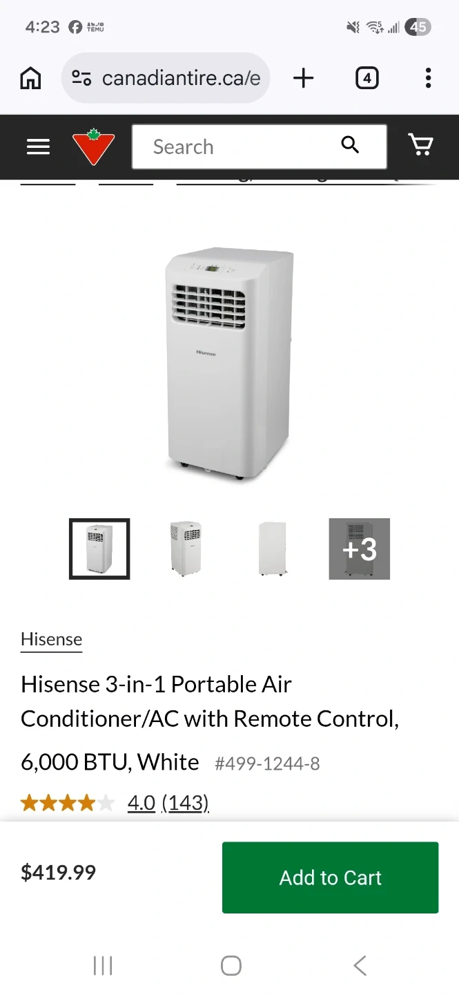 This Hisense portable air conditioner offers 6,000 BTU cooling power and a 3-in-1 functionality. It's white and comes with a remote control for easy operation. Perfect for keeping a room cool and comfortable!