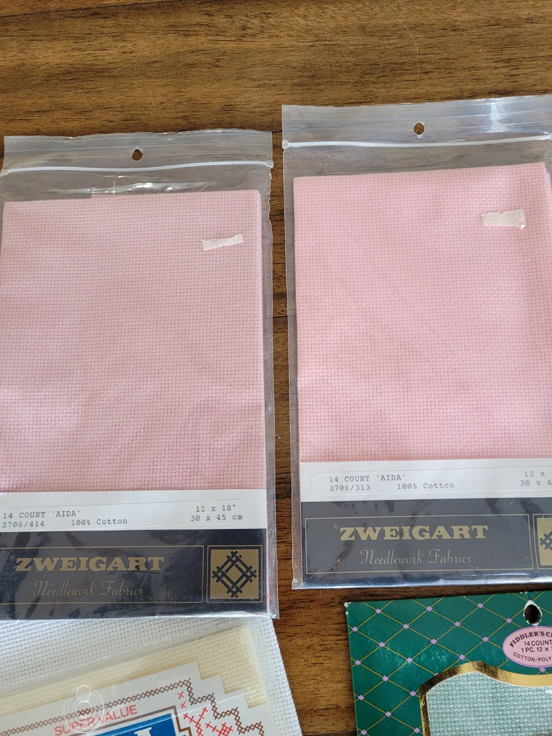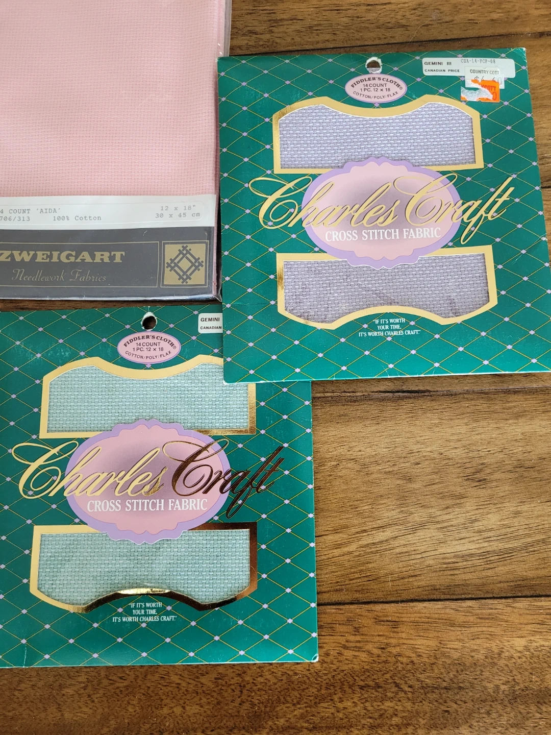 Package includes Zweigart and Charles Craft 14 count Aida cross stitch fabric. All pieces are 100% cotton and measure 12" x 18". Great for various embroidery projects! Great for cross-stitch and embroidery stitching.
