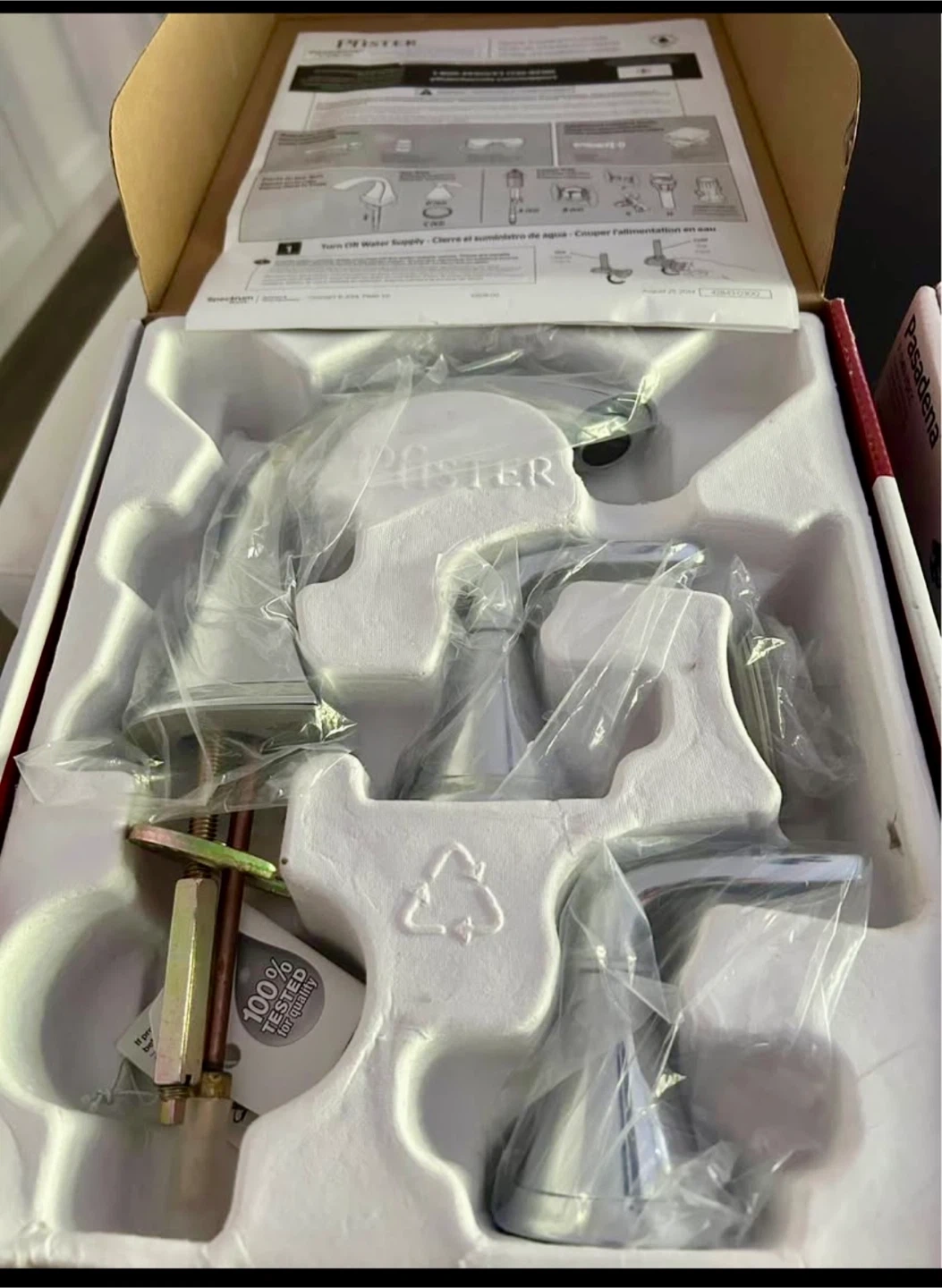 15Selling 2 brand new Pfister Pasadena 2-Handle 8-inch Widespread Bathroom Sink Faucets in chrome. Brand new, still in the box and comes with all the original components. A tight seal every time and installs in half the time! Price is for two sets! One set $80