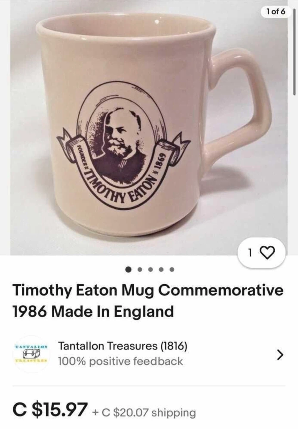 $14- 2 Vintage Timothy Eaton Commemorative 1986 coffee mugs made in England.