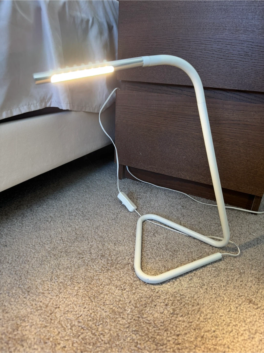 Selling a simple Ikea LED desk lamp. It's in good condition and provides a nice, focused light, perfect for studying or working at your desk. It has a minimalist design that fits well in any room