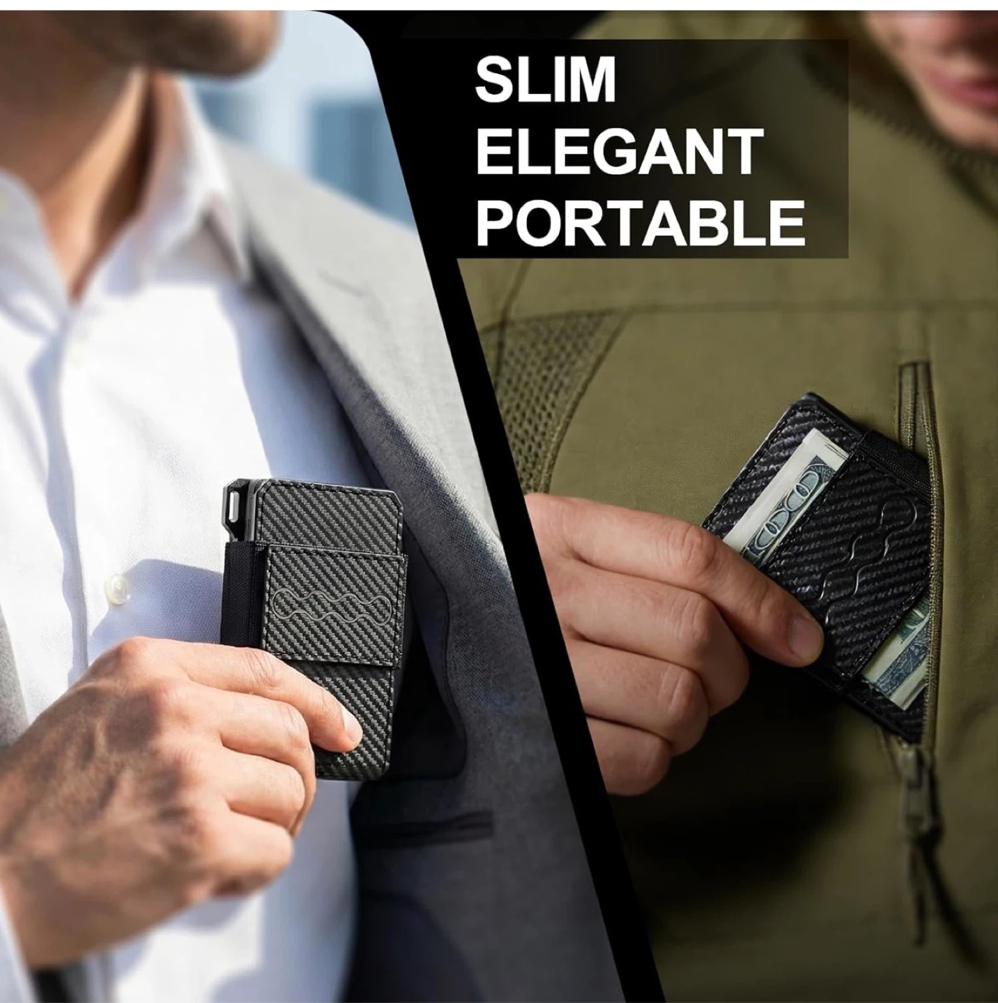 Wallet for Men, RFID Blocking Minimalist Leather Pull-out Cloth Belt Wallet with Money Clip, Men's Wallet for 8-15 Cards & Cash, Pocket Fashion Credit Card Holder (Carbon Fiber)
