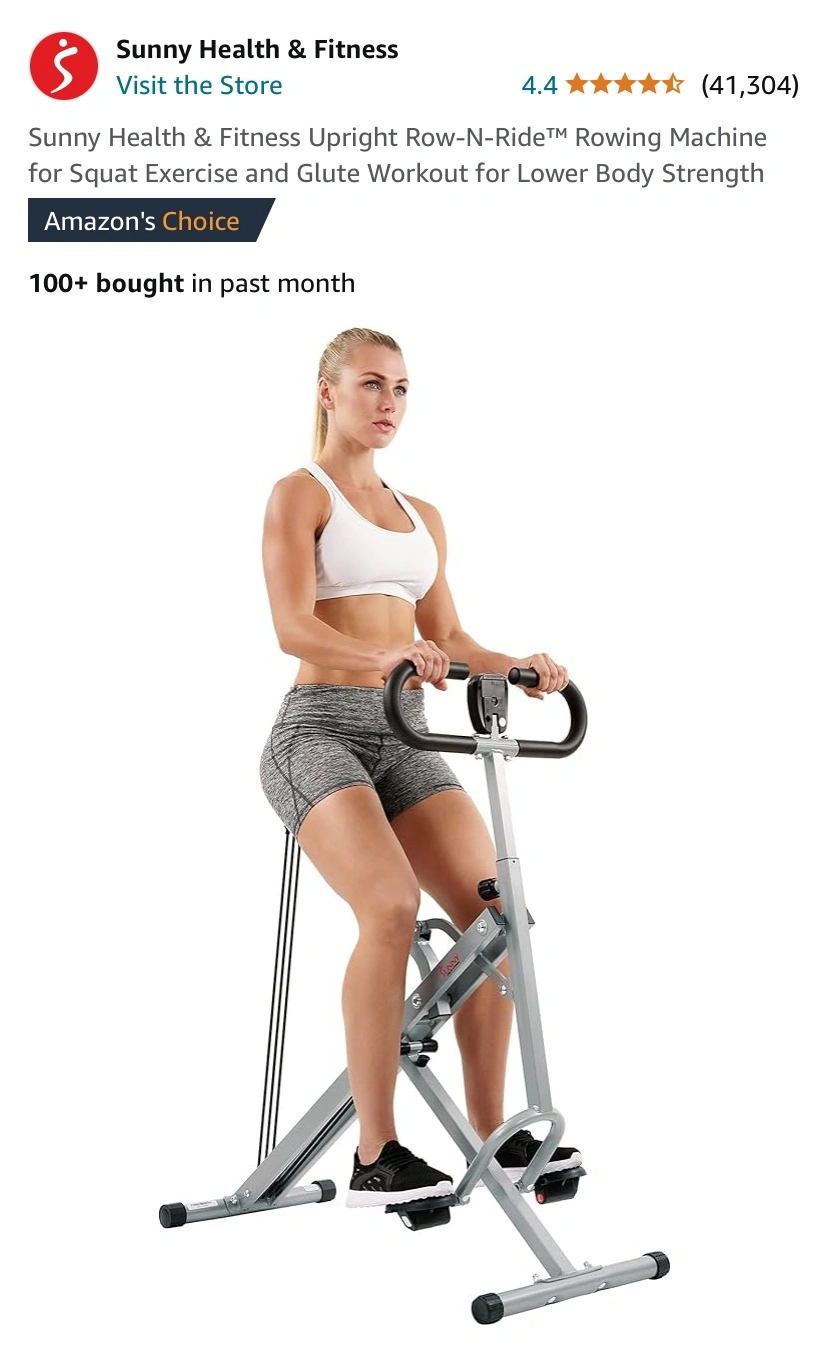 Sunny Health & Fitness Upright Row-N-Ride™ Rowing Machine for Squat Exercise and Glute Workout for Lower Body Strength