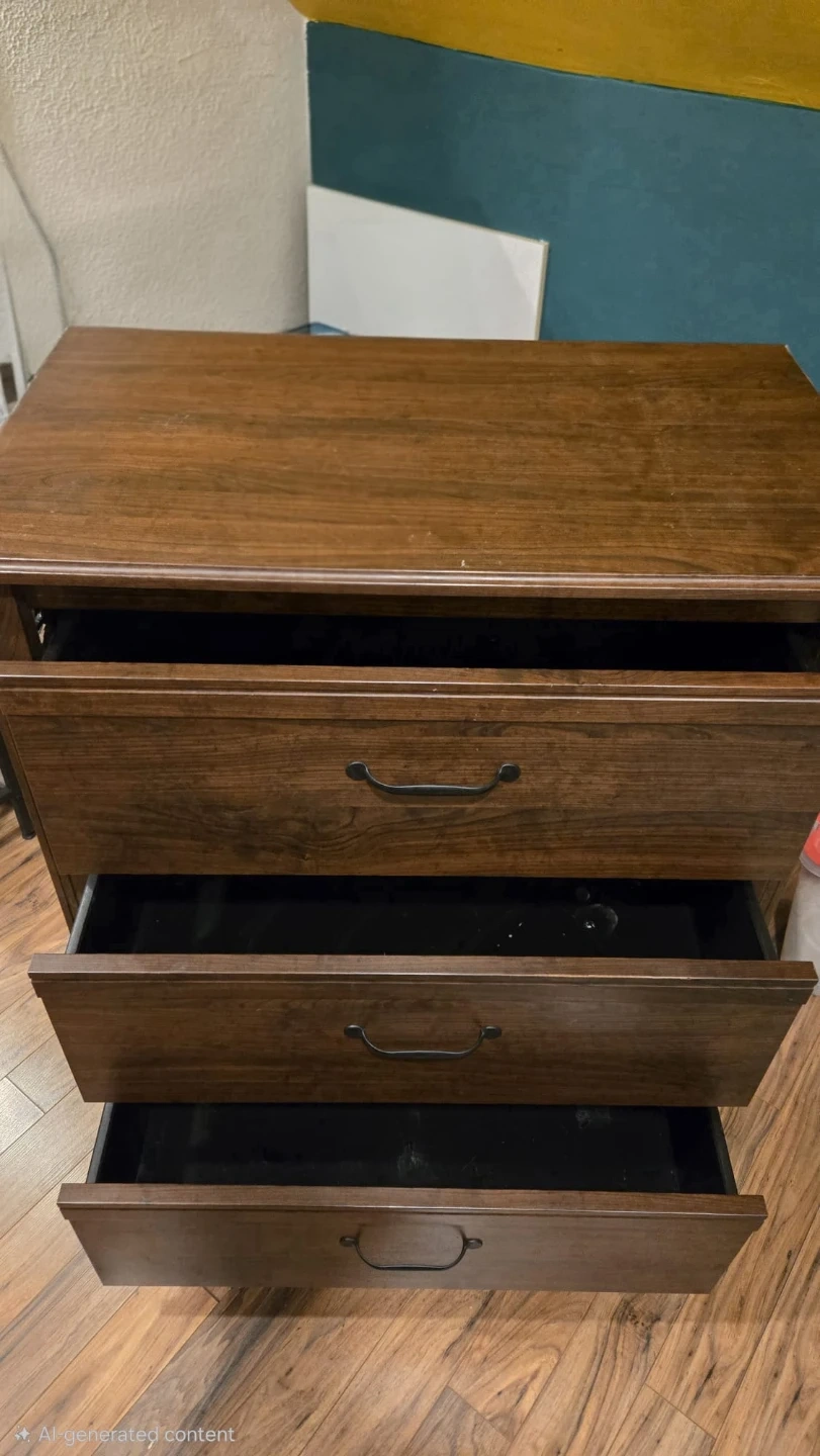Solid wood dark brown dresser with three drawers. It's in good condition and ready for a new home. Perfect for adding some storage to your bedroom or any other space. It's heavy so bring someone with you when picking up.