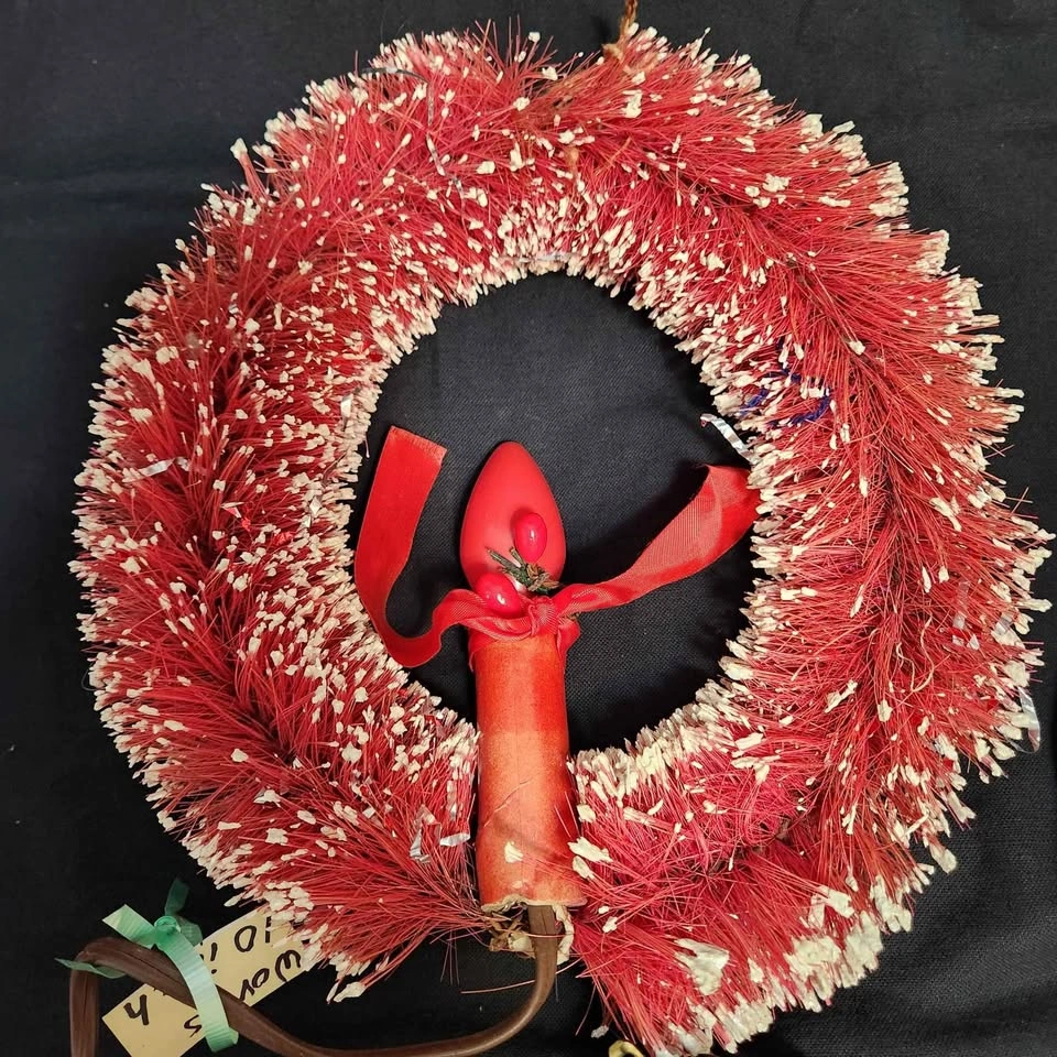 This 10 inch vintage red snow flocked wreath would add some great nostalgia to your bottle brush collection of vintage trees, wreaths and candy canes.