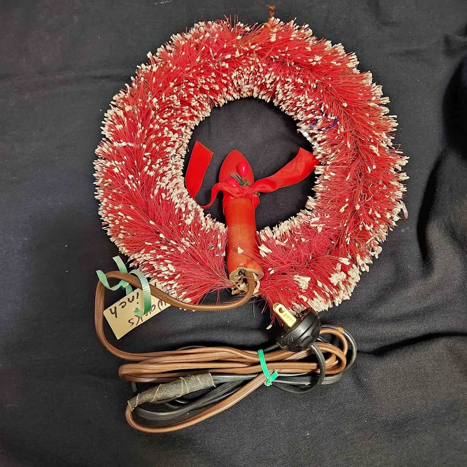 This 10 inch vintage red snow flocked wreath would add some great nostalgia to your bottle brush collection of vintage trees, wreaths and candy canes.