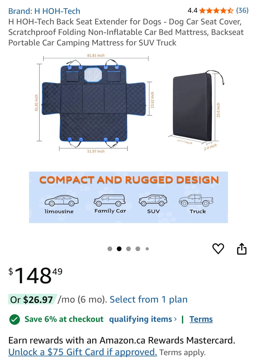 This HOH-Tech back seat extender is designed for dogs, acting as a durable car seat cover and a comfortable, non-inflatable mattress. It's scratchproof and foldable, making it portable for car camping trips in SUVs and trucks. Keep your vehicle clean and your pet comfy on the go!