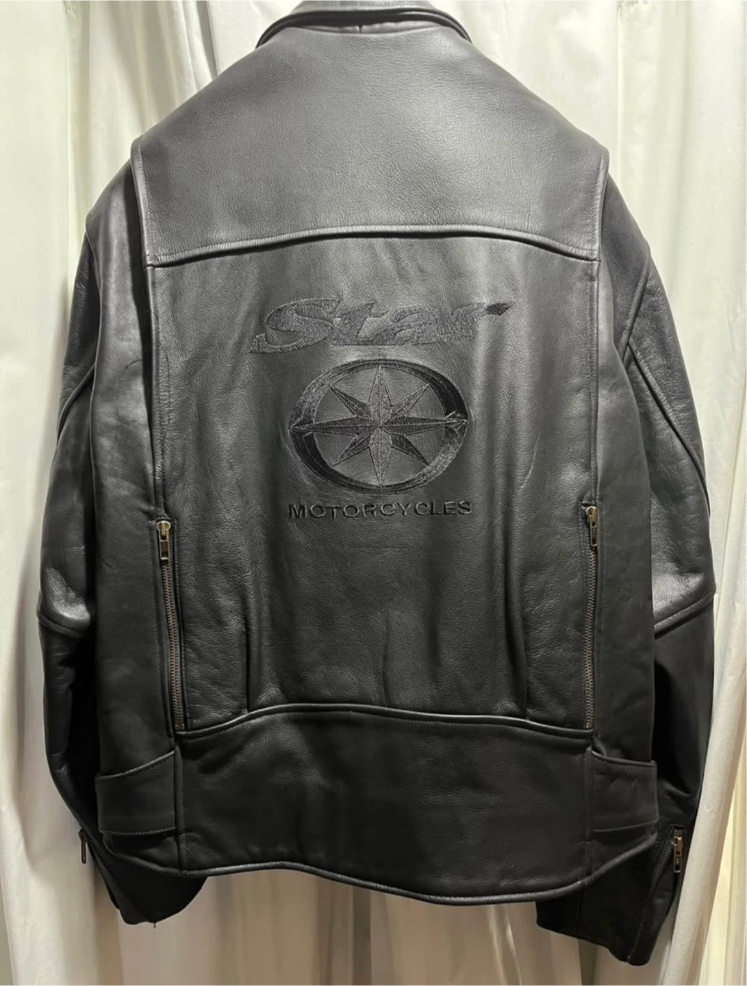 Black Yamaha Motorcycles leather jacket. Size L/G . Features quilted lining for added warmth and comfort, embroided Yamaha logo on the back.