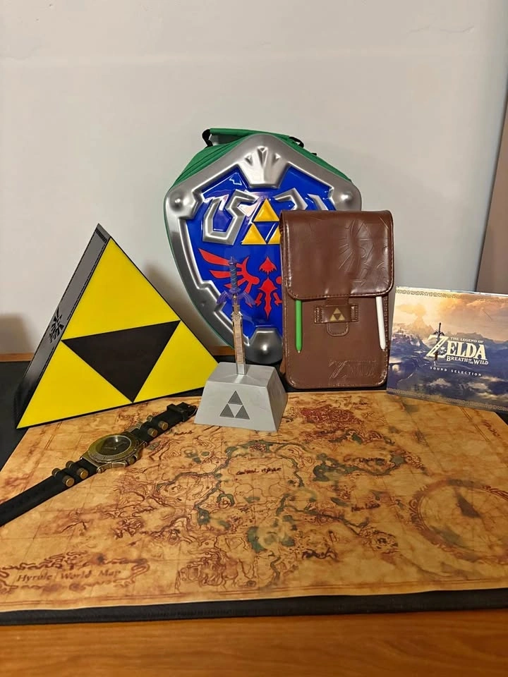 I’ve collected these items over the years, and they’re some of my favorite pieces from the Zelda universe. From the Breath of the Wild collector’s edition items (box, soundtrack, map, Hylian Shield bag) to plushies of Link and the Hylian Shield, a Master Sword stand, Triforce light-up decor, a Zelda-themed watch, and even a Twilight Princess Link Figma figure – each item has been carefully kept and loved. This collection is perfect for any fan who appreciates the series as much as I do, but I’m ready to pass it on to someone who will value it even more. Whether you want to display it, enjoy the plushies, or just complete your Zelda setup, these pieces are ready to find a new home.