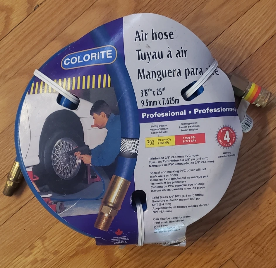 Buy & SellColorite 25ft Professional Air HoseColorite 25ft Professional Air Hose$15New, never used. 3/8" x 25' reinforced PVC air hose. Professional grade. Includes 1/4" NPT brass fittings. Blue.WHERE TO MEETCheck LocationView MapSELLERDonFoxboro100 reviews0 chats·0 favorites·10 viewsSEND CHAT TO SELLERHi Don! I’m interested in your listing.Hi Don! I’m interested in your listing.Get the Karrot app to chatSign In to chat