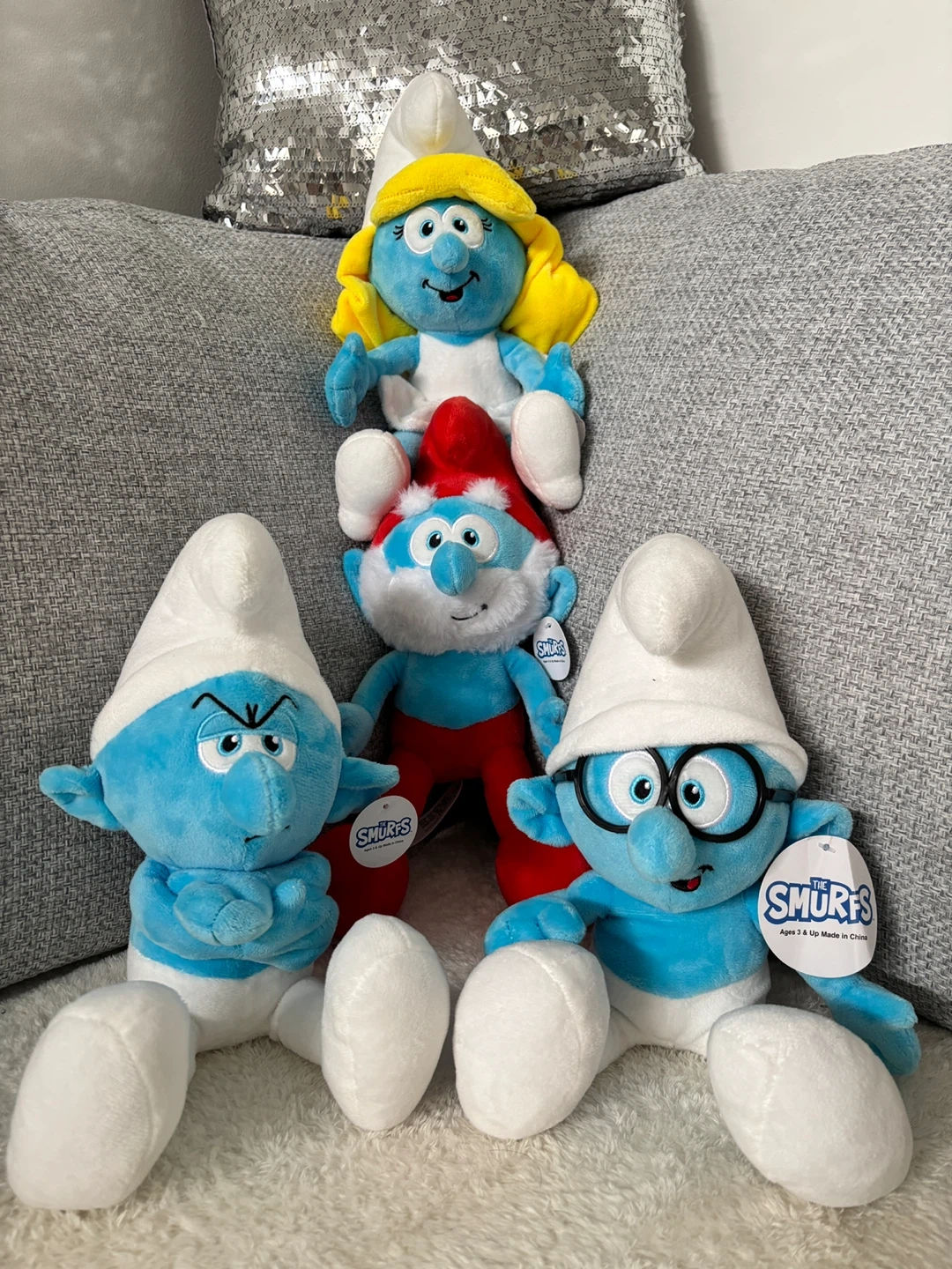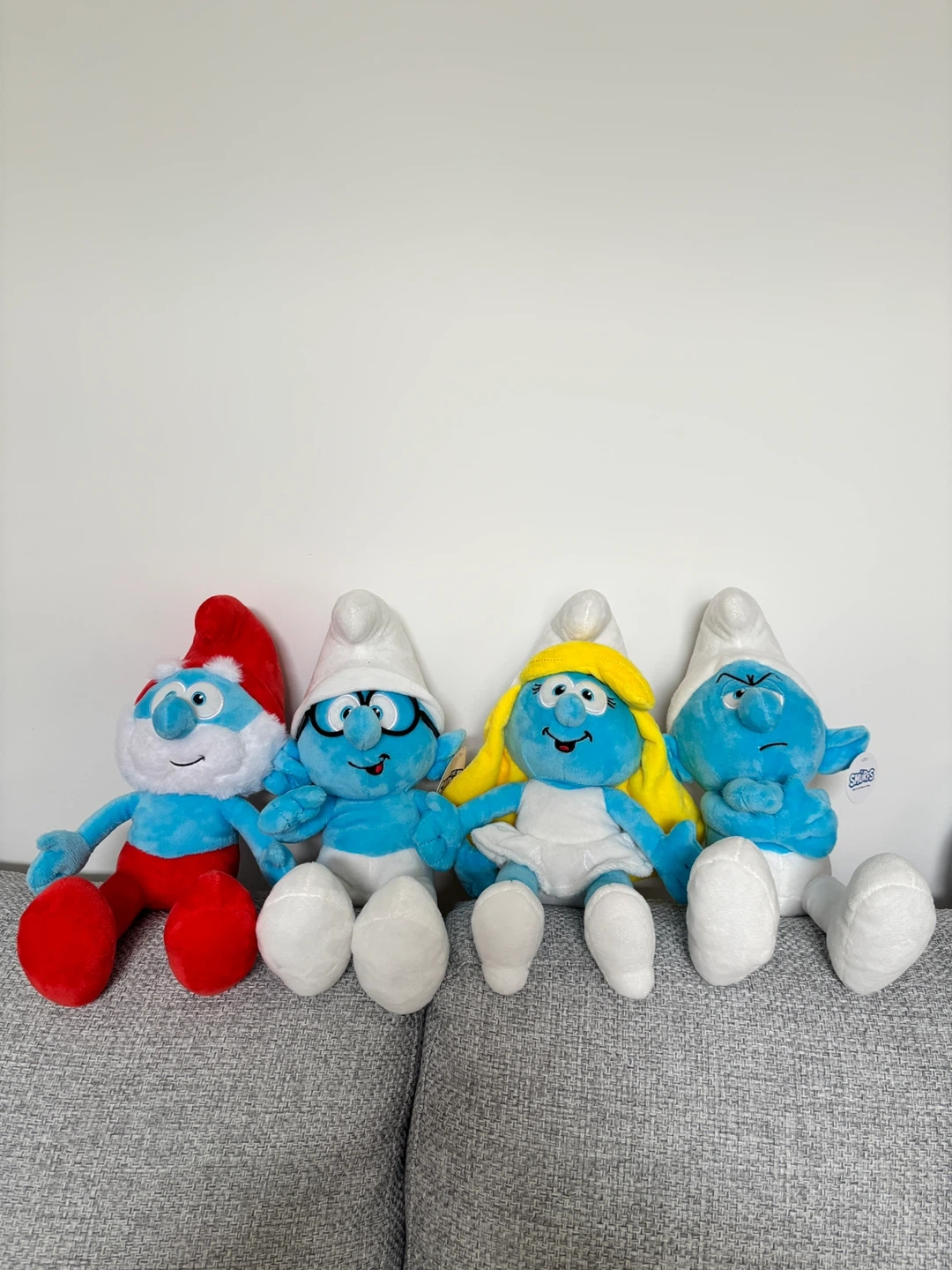 This set includes four plush Smurf characters. They're made of soft material, perfect for fans of the Smurfs! Ideal for collectors or kids who love these animated characters.