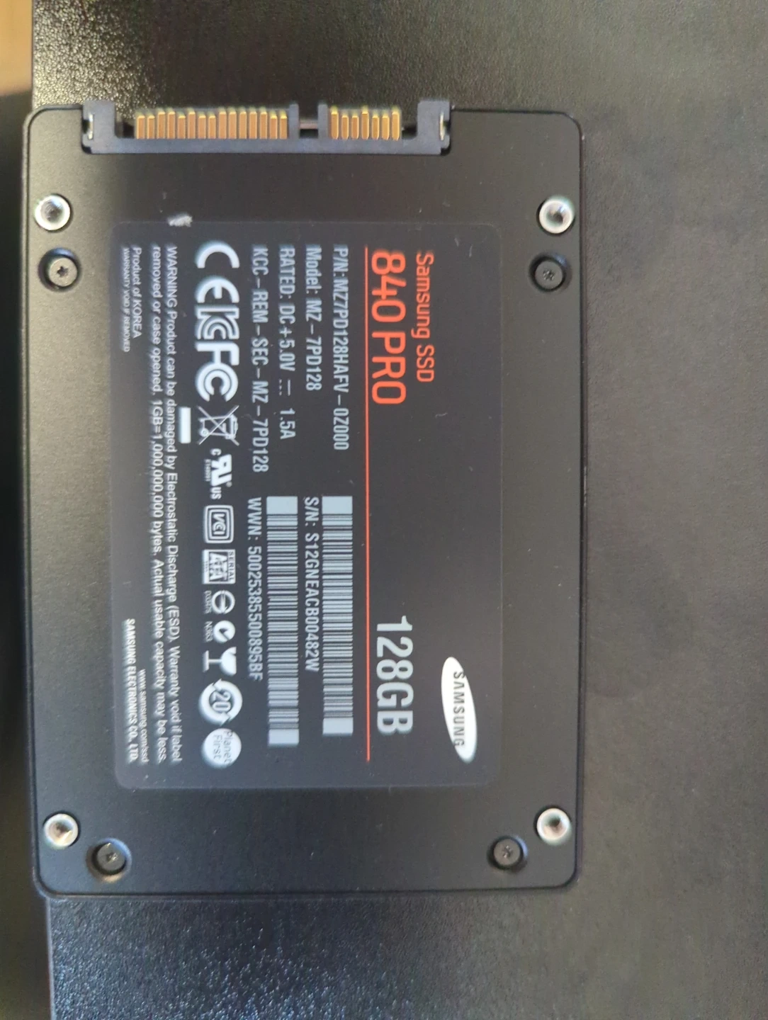 Samsung 840 PRO Solid State Drive. 128GB capacity. Model MZ-7PD128D.