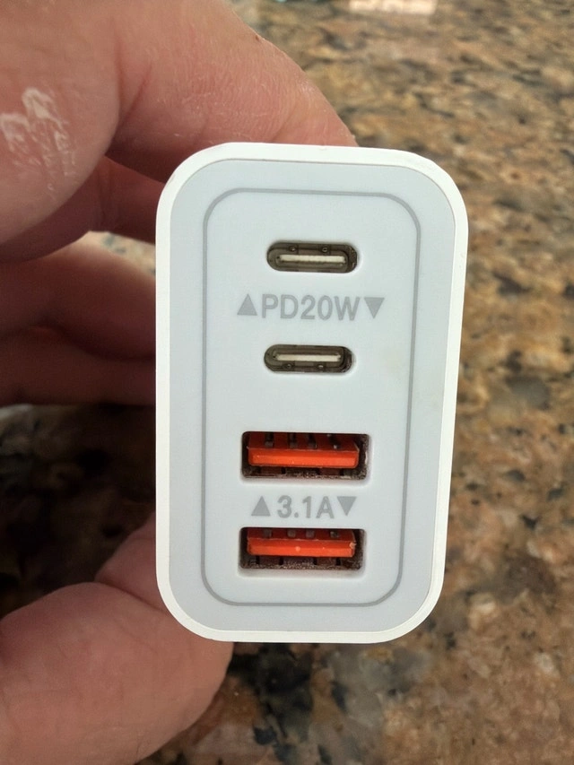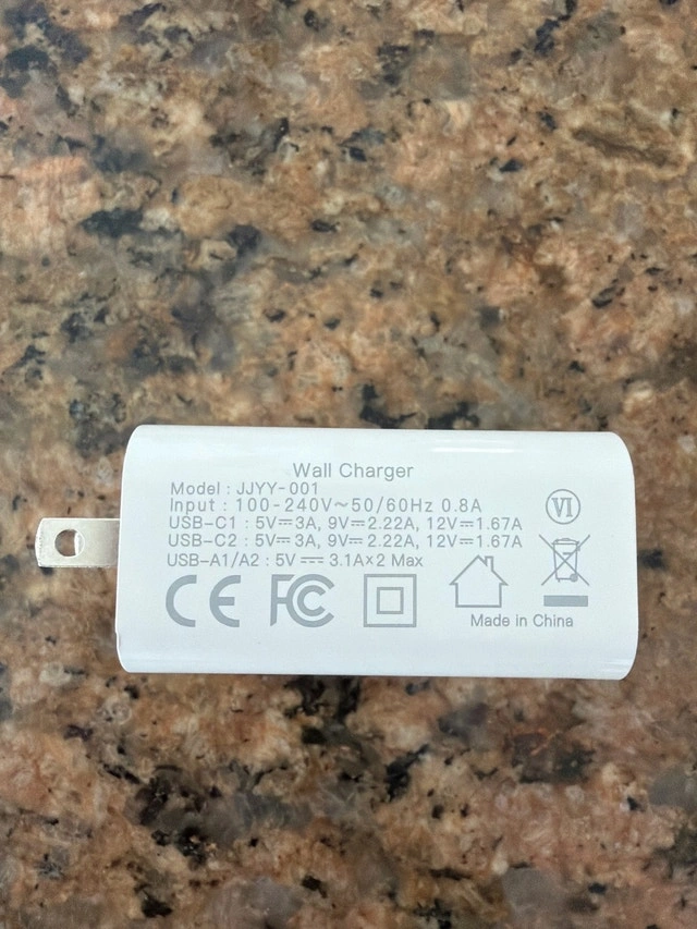 This brand new power adapter for 4 devices offers fast charging for a variety of devices using both USB and USB-C connections, ensuring your gadgets power up quickly and efficiently. Perfect for anyone needing a reliable and speedy charging solution. Specifications: Model: JJYY-001 Input: 100-240V~50/60Hz 0.8A USB-C1: 5V=3A, 9V=2.22A, 12V=1.67A USB-C2: 5V=3A, 9V=2.22A, 12V=1.67A USB-A1/A2: 5V=3.1A x 2 Max If you're reading this, it's still available!