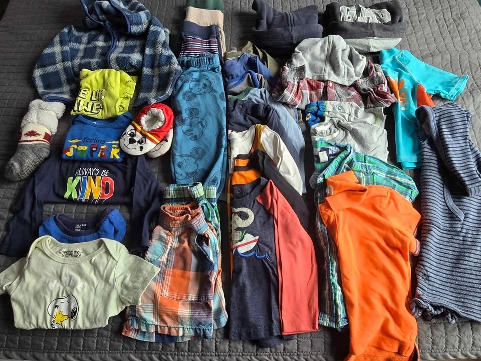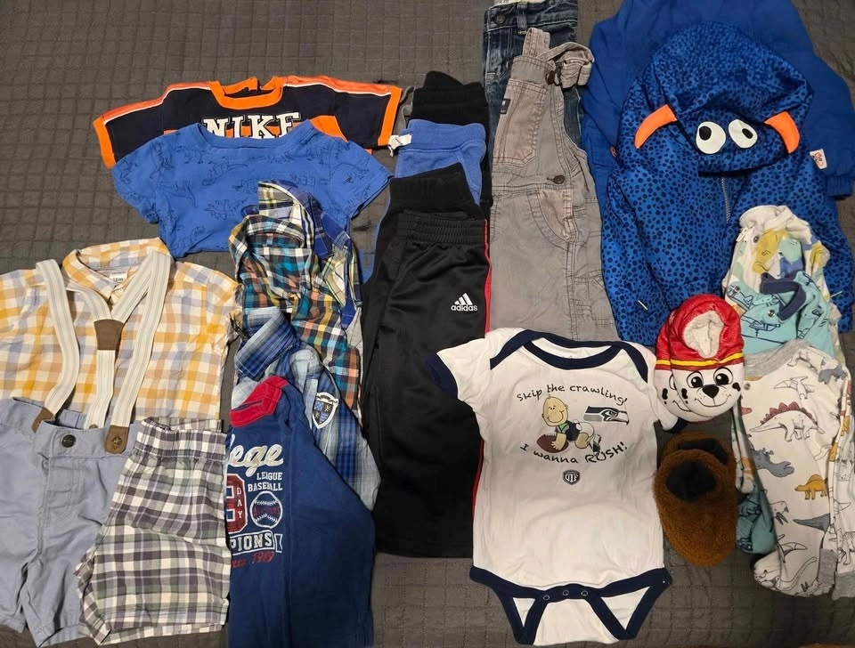 37 items for 18-24 months (first two pictures) and 20 items for 18 months (third picture). Also includes some socks and slippers/booties. Feel free to message if you have any questions!