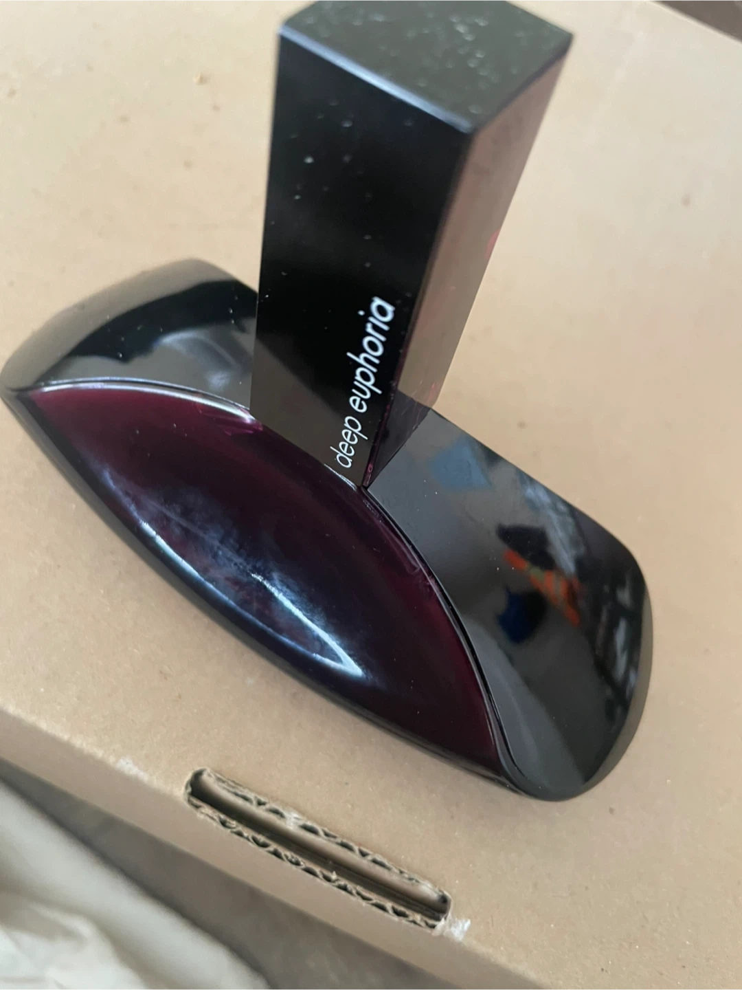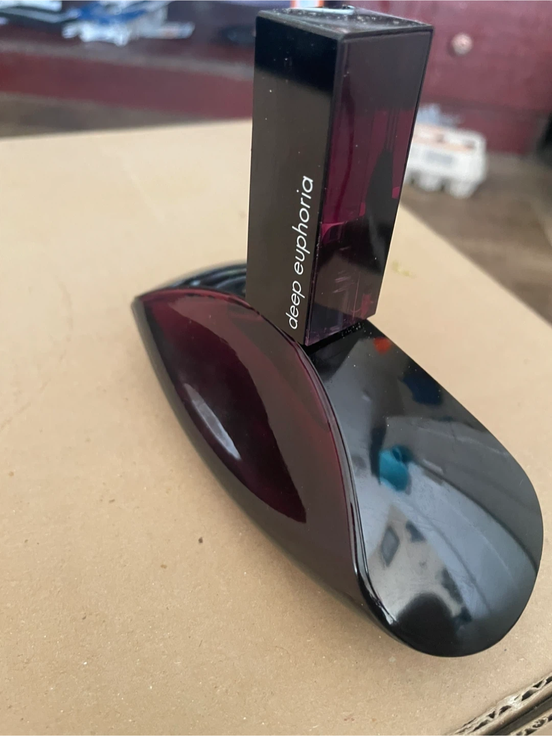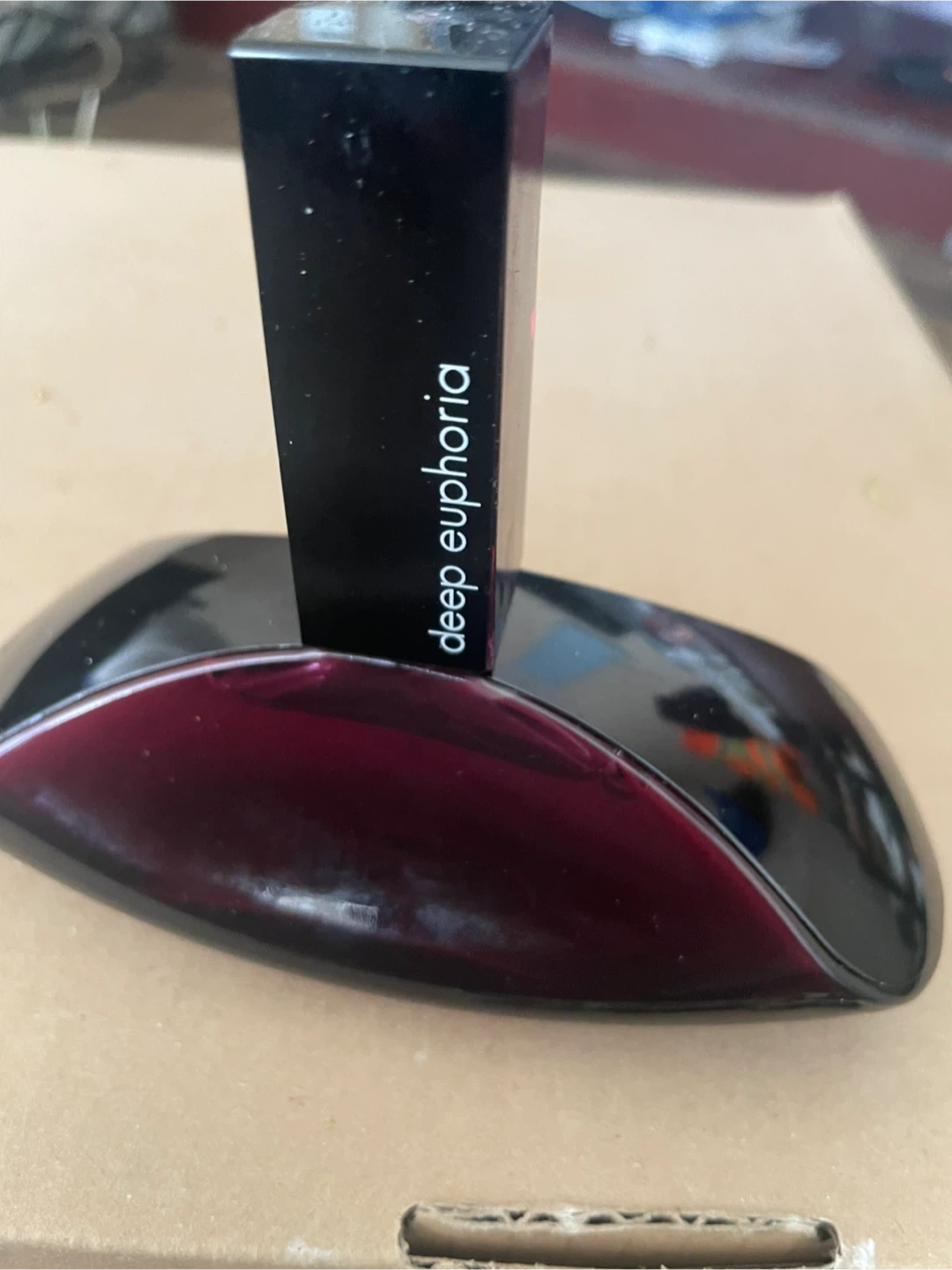 This is a bottle of Calvin Klein Deep Euphoria Eau de Parfum. It features a distinctive black and deep red bottle design. Perfect for a signature scent! Never used. 3.4 FL OZ 100 Ml