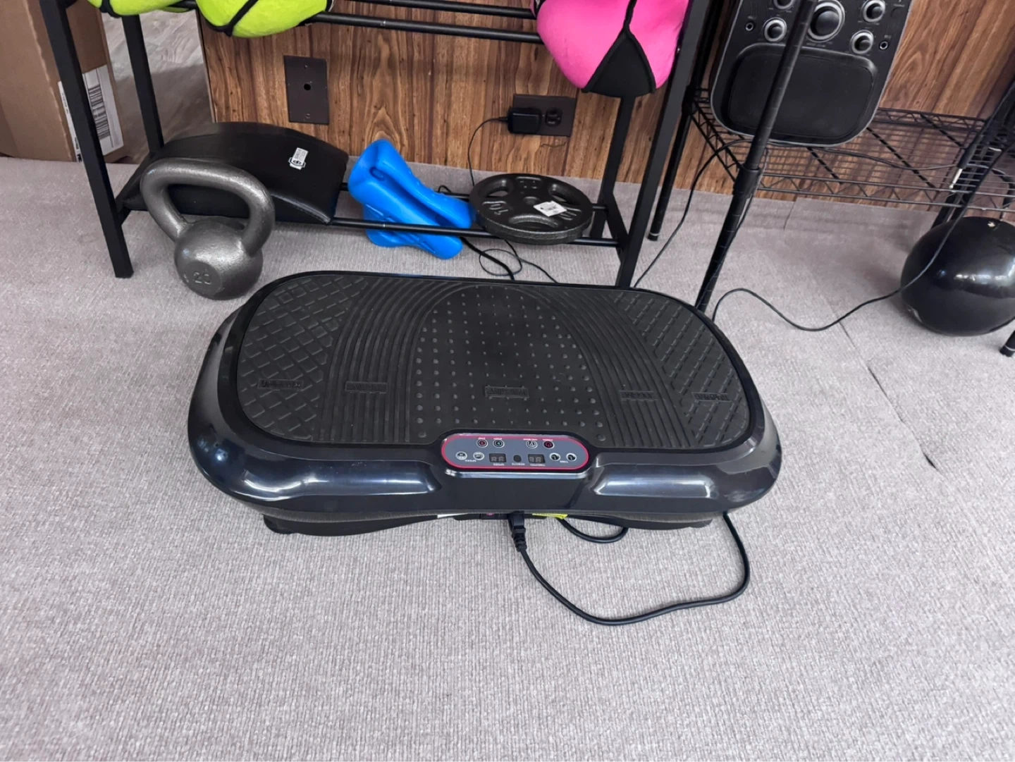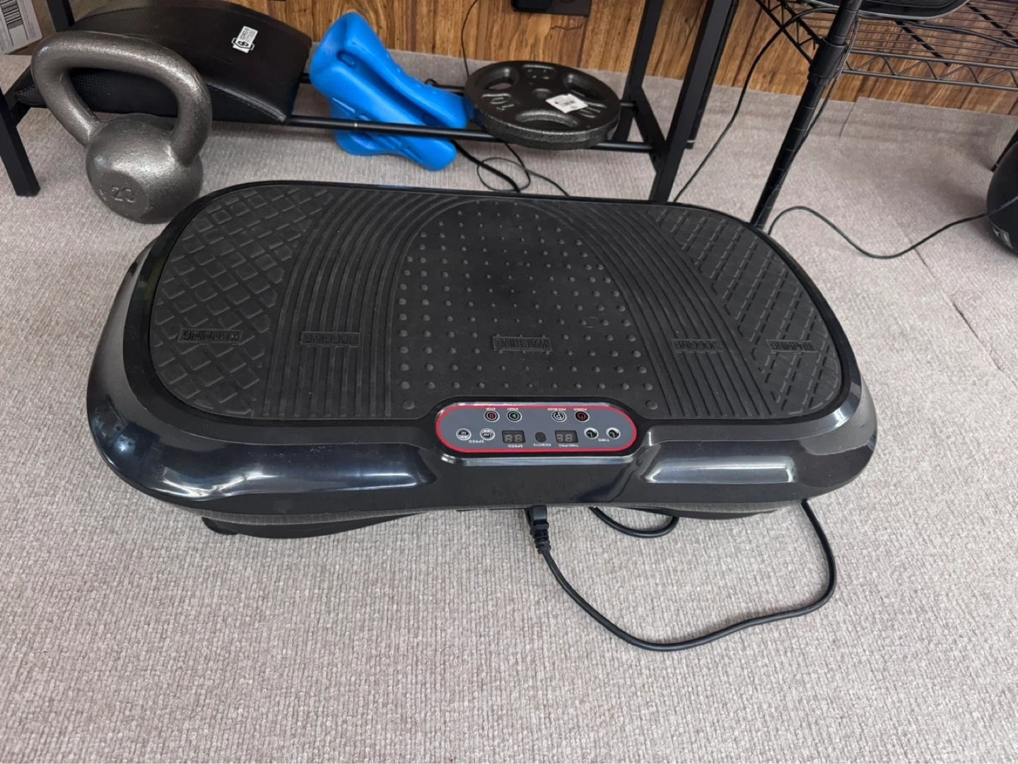 This black vibration plate offers various workout modes including walking, jogging, and running. It's a compact fitness machine for home use. This machine is great for anyone looking to add variety to their workout routine.