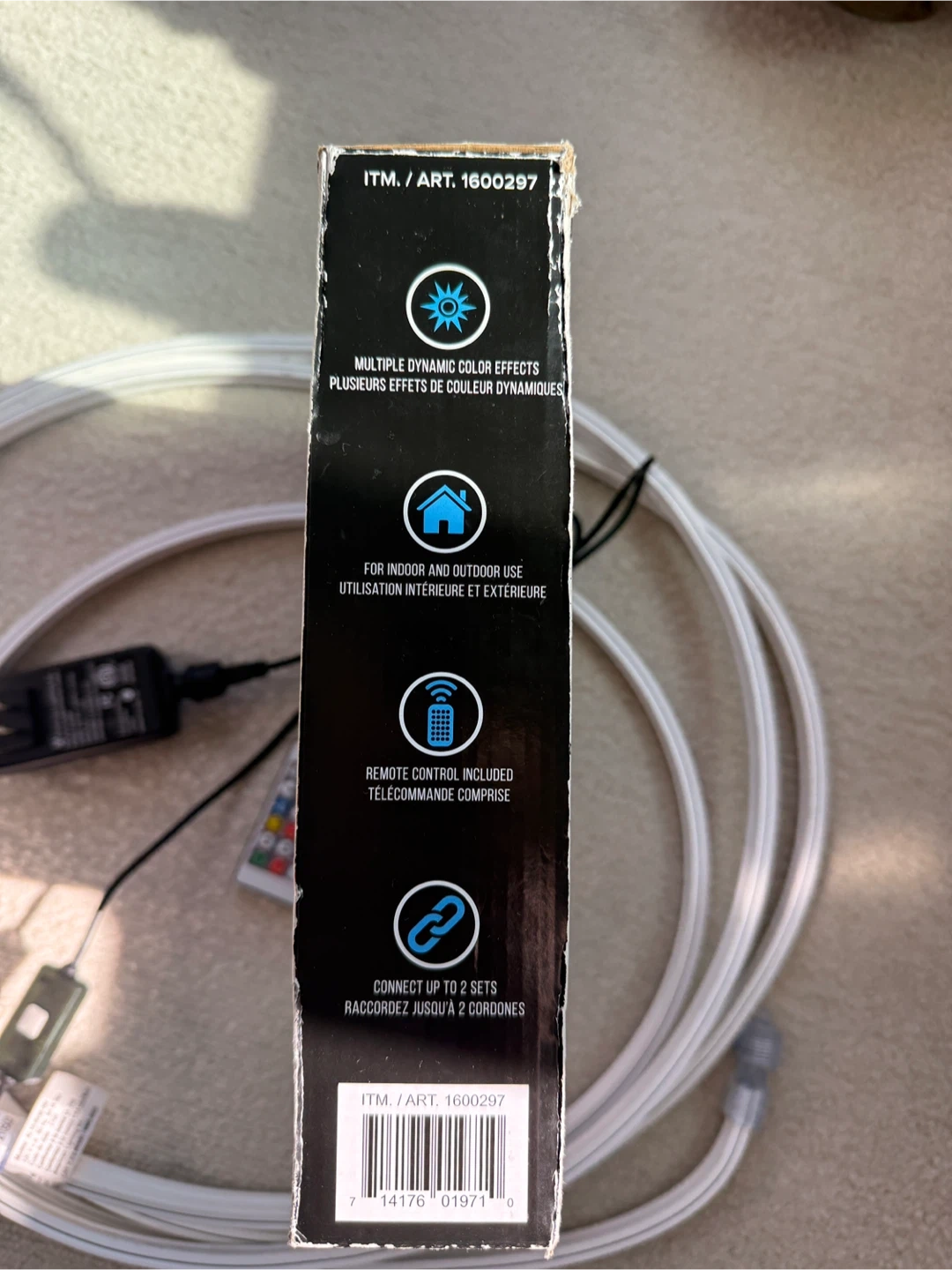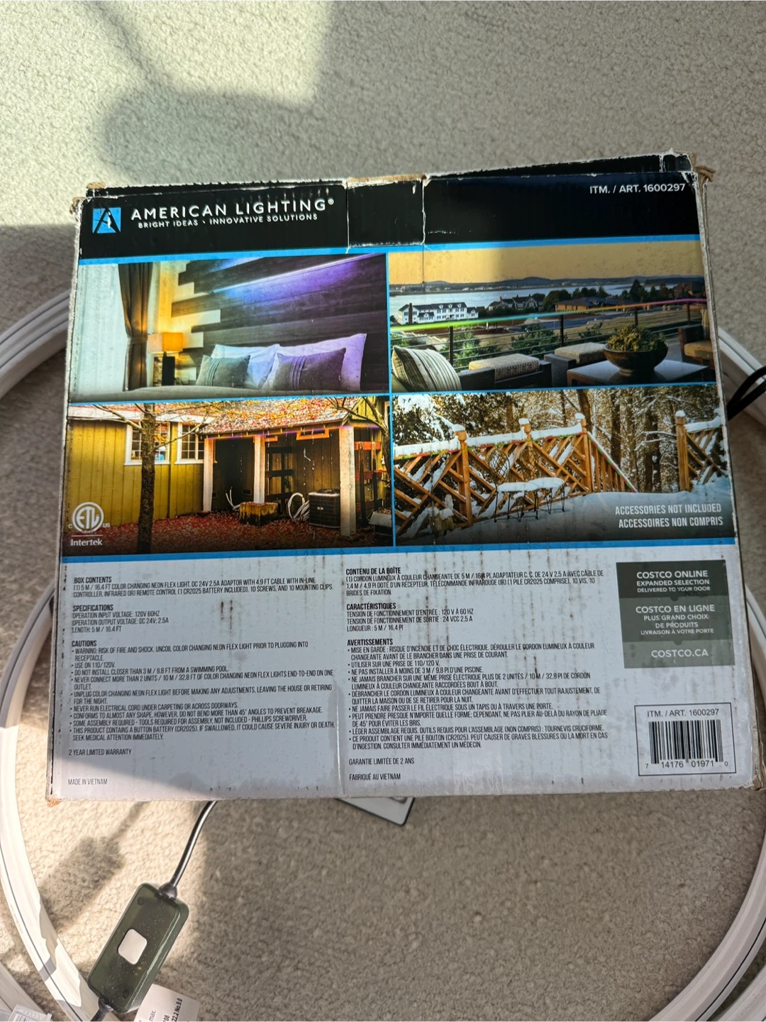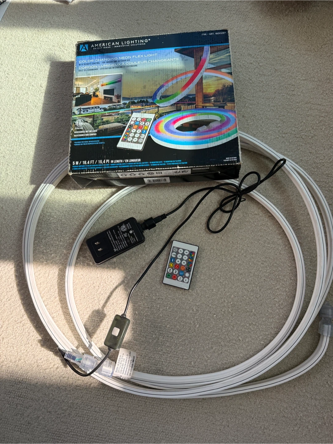 This American Lighting Color Changing Neon Flex Light is 5 meters (16.4 feet) long. It's suitable for indoor and outdoor use and comes with a remote control. It connects up to two sets.