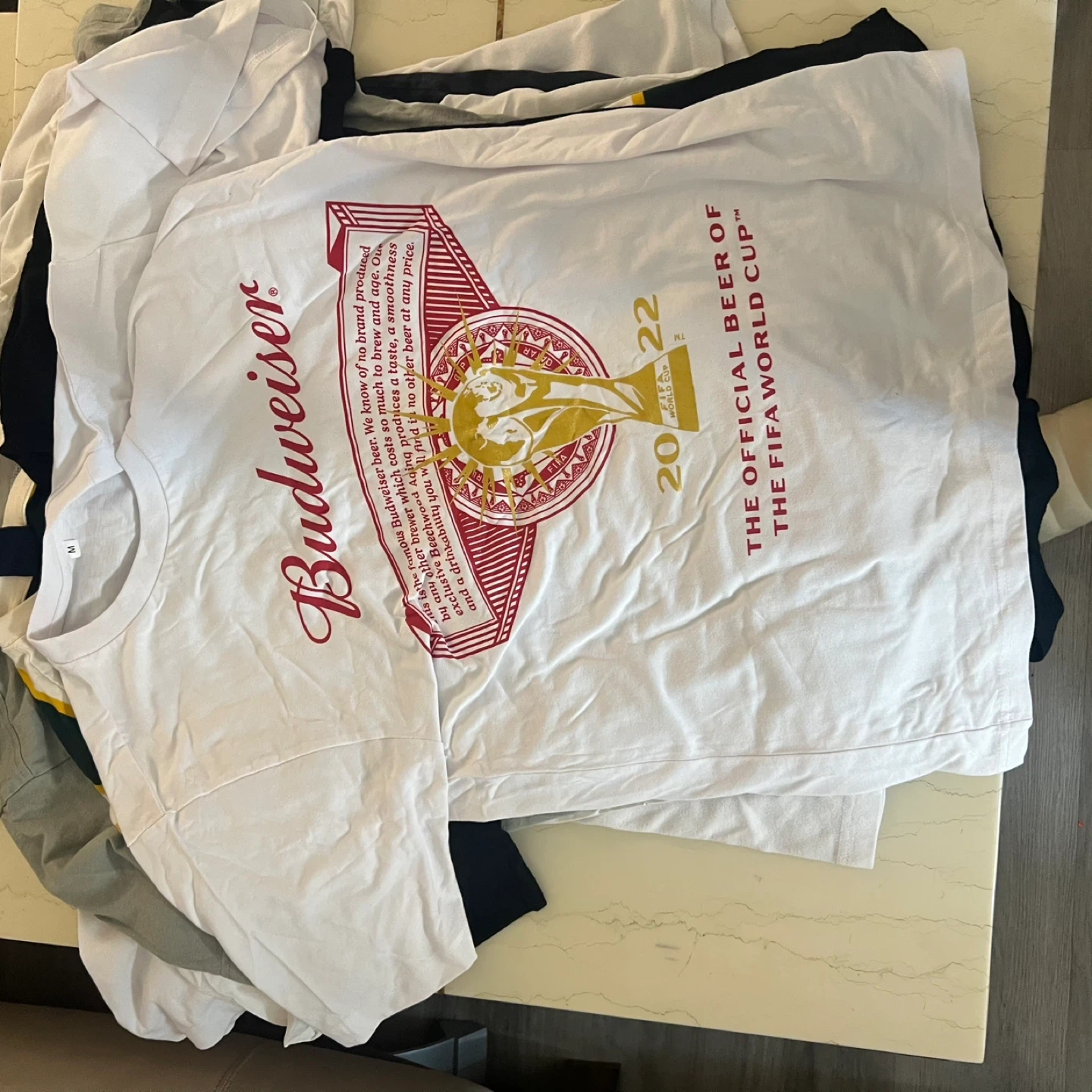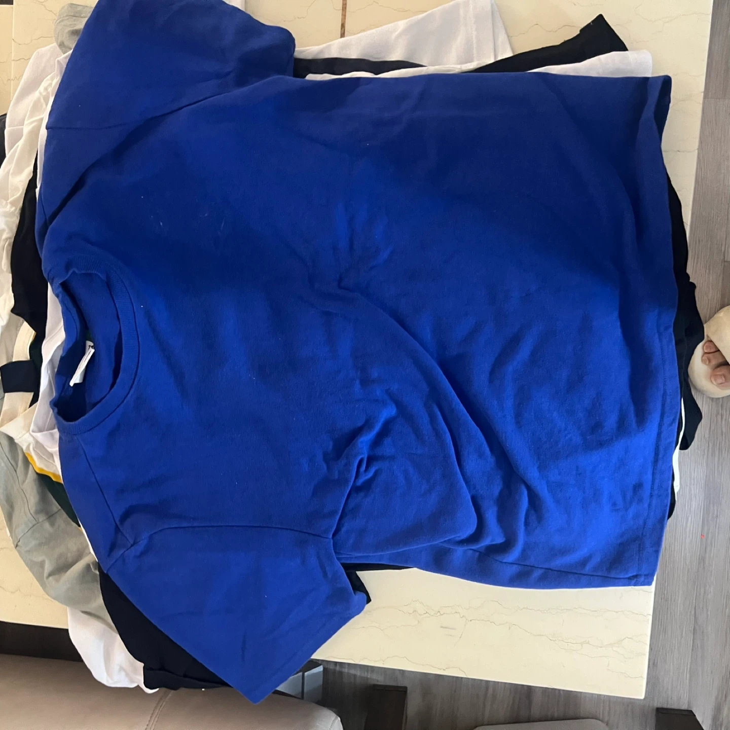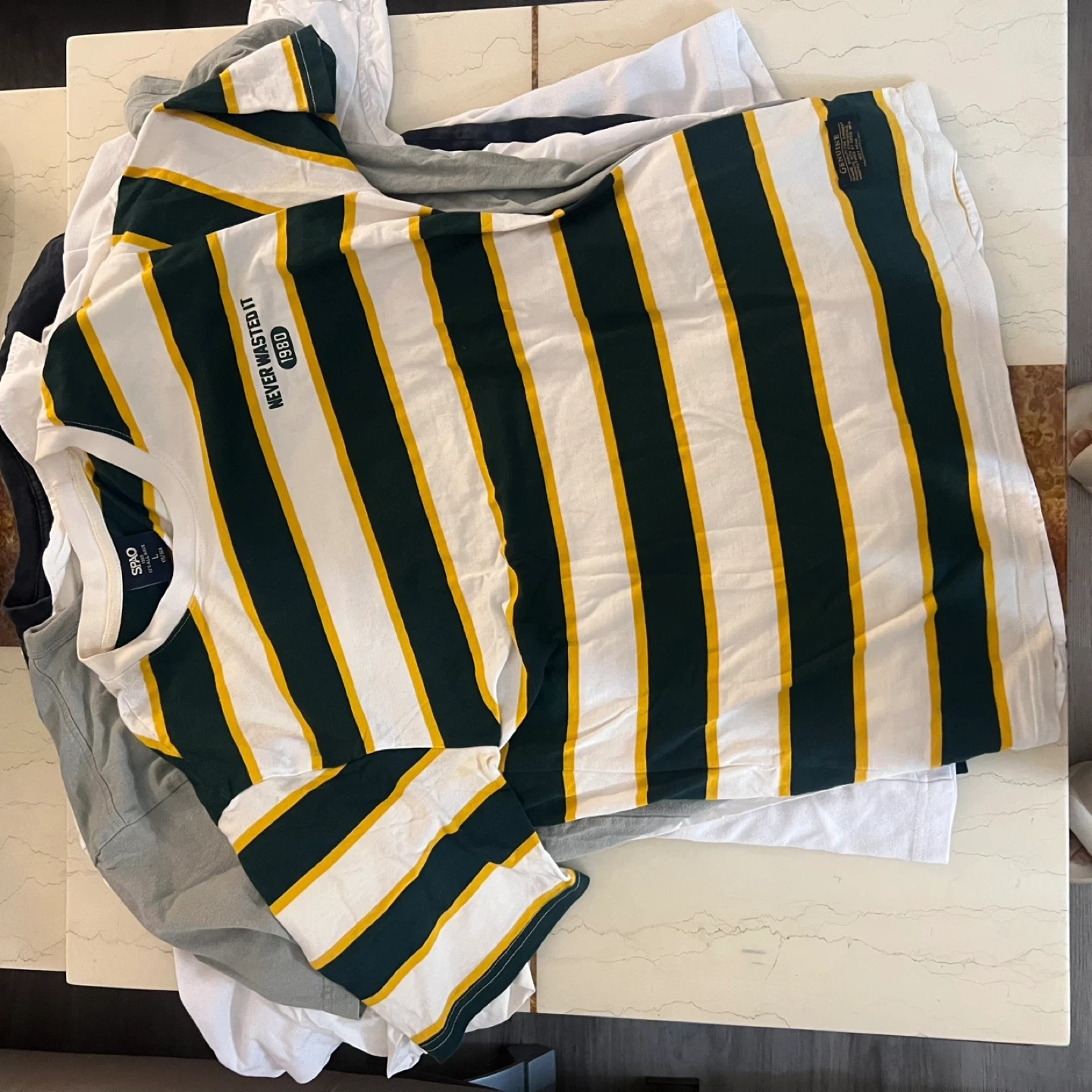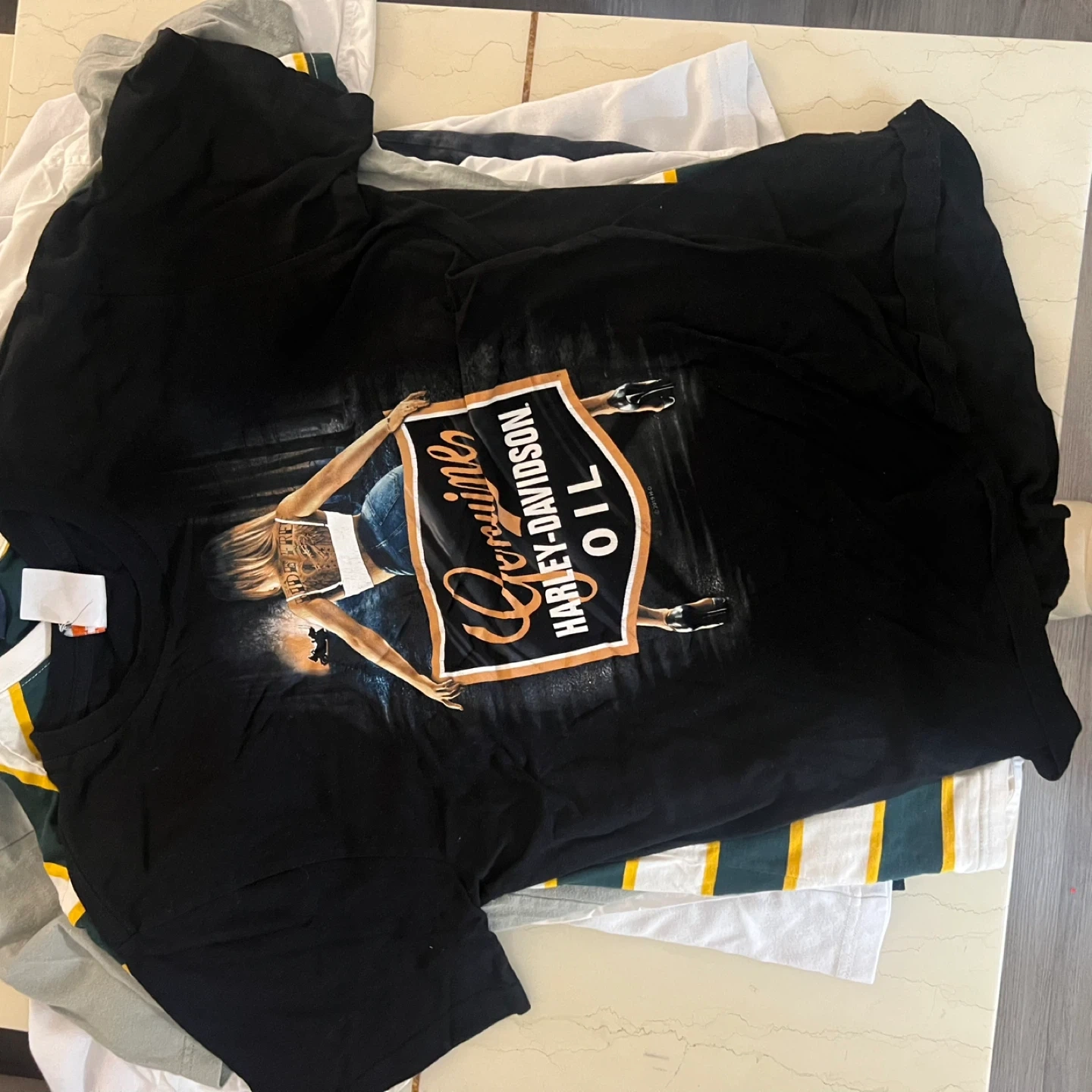 Selling 10 men’s T-shirts in good condition — includes various colors and styles (Nike, Harley Davidson, Budweiser, striped, and plain tees).