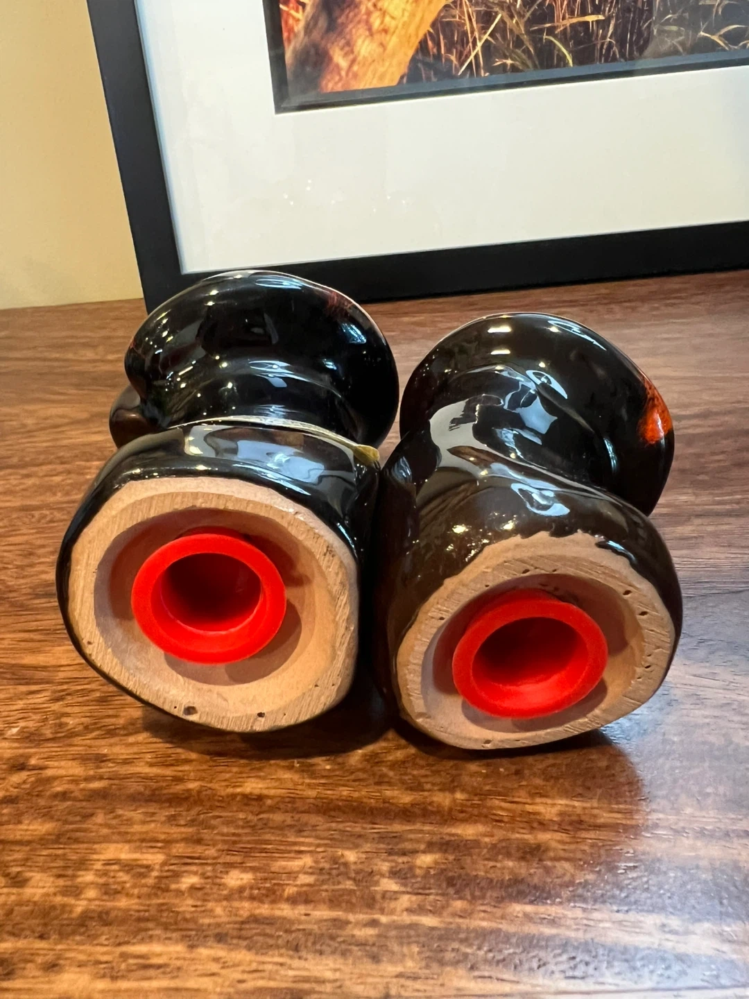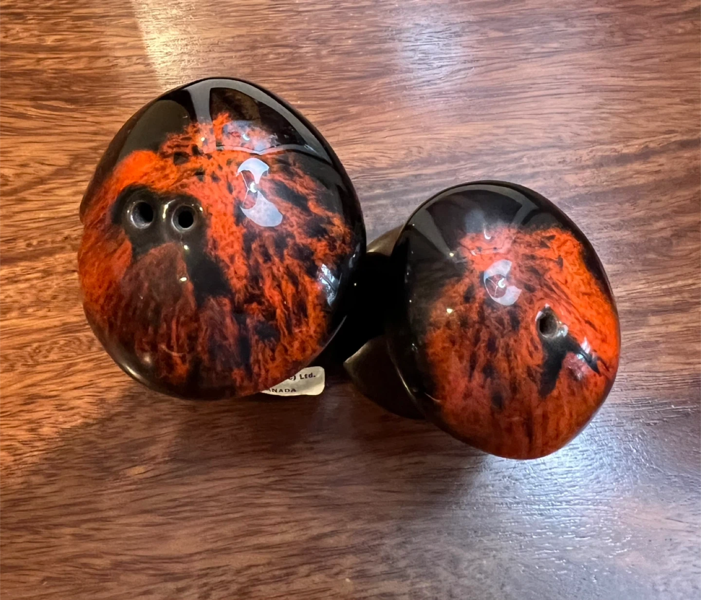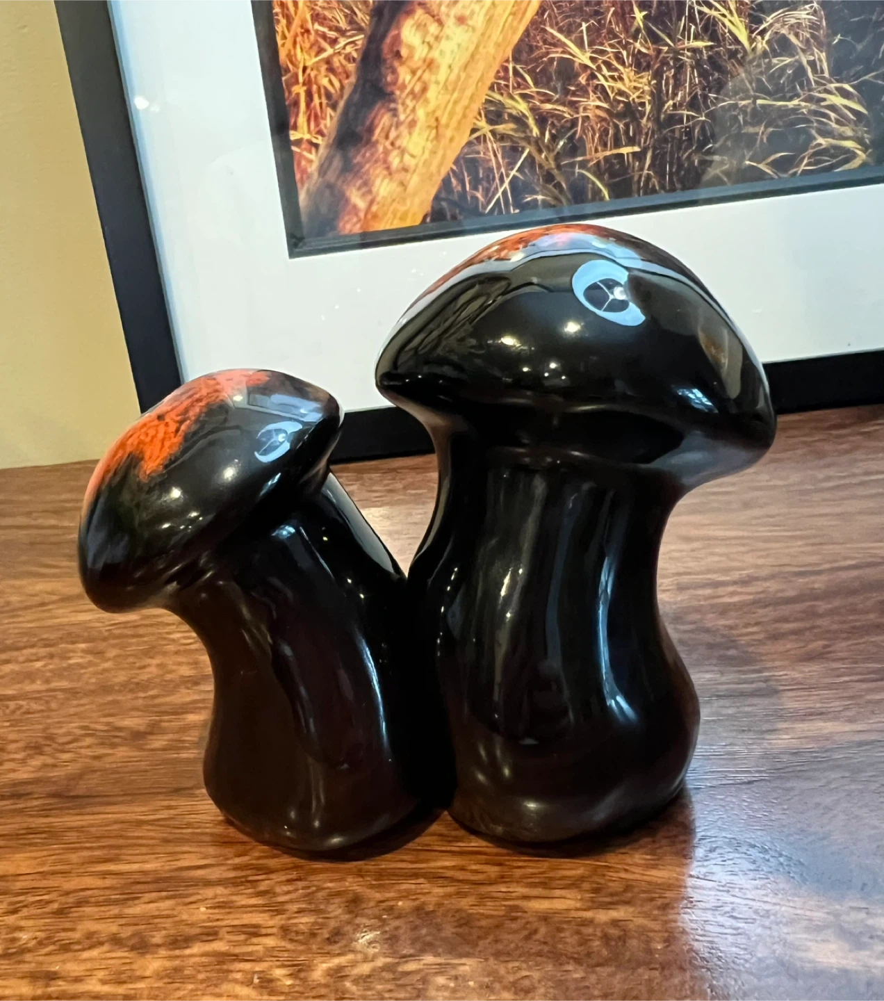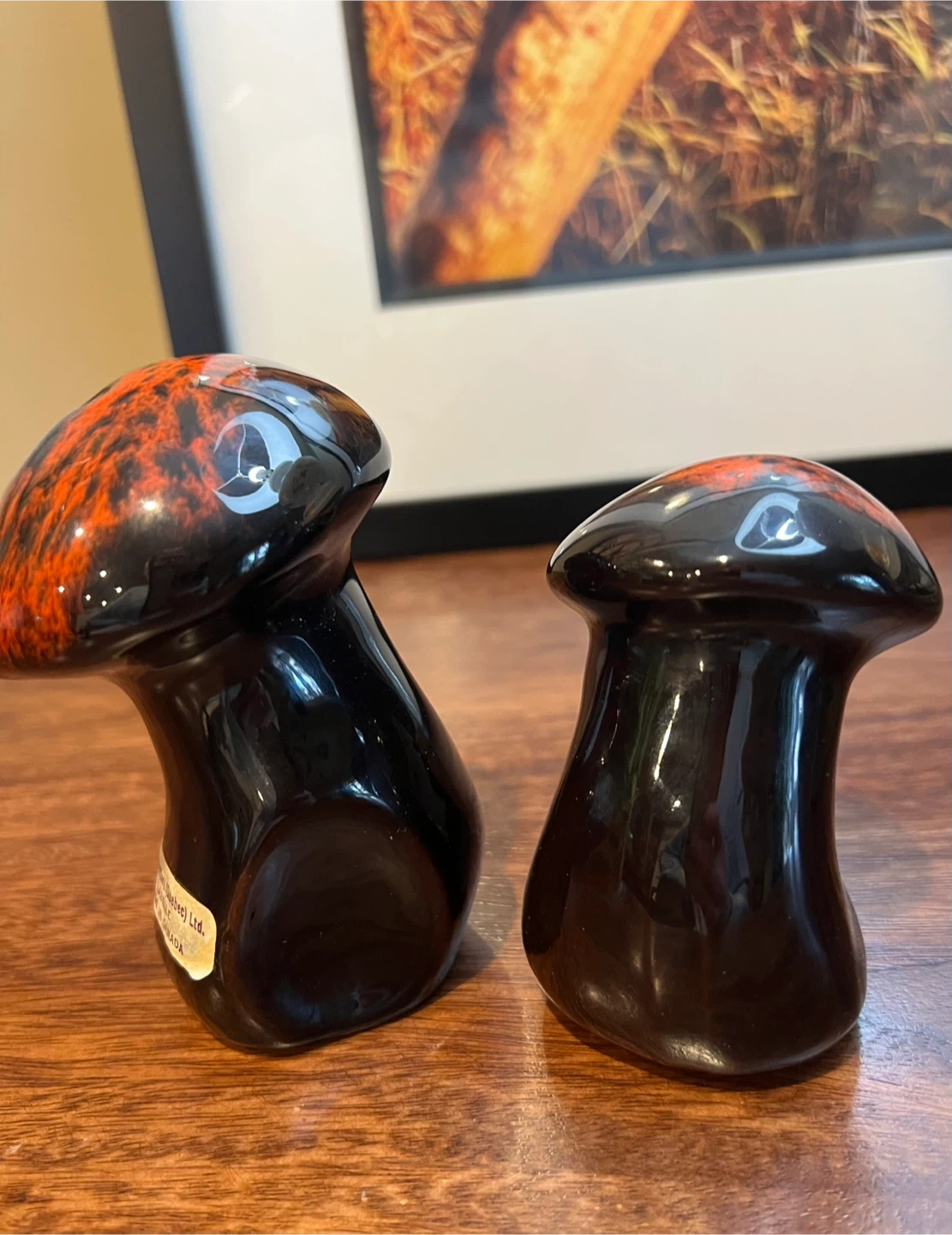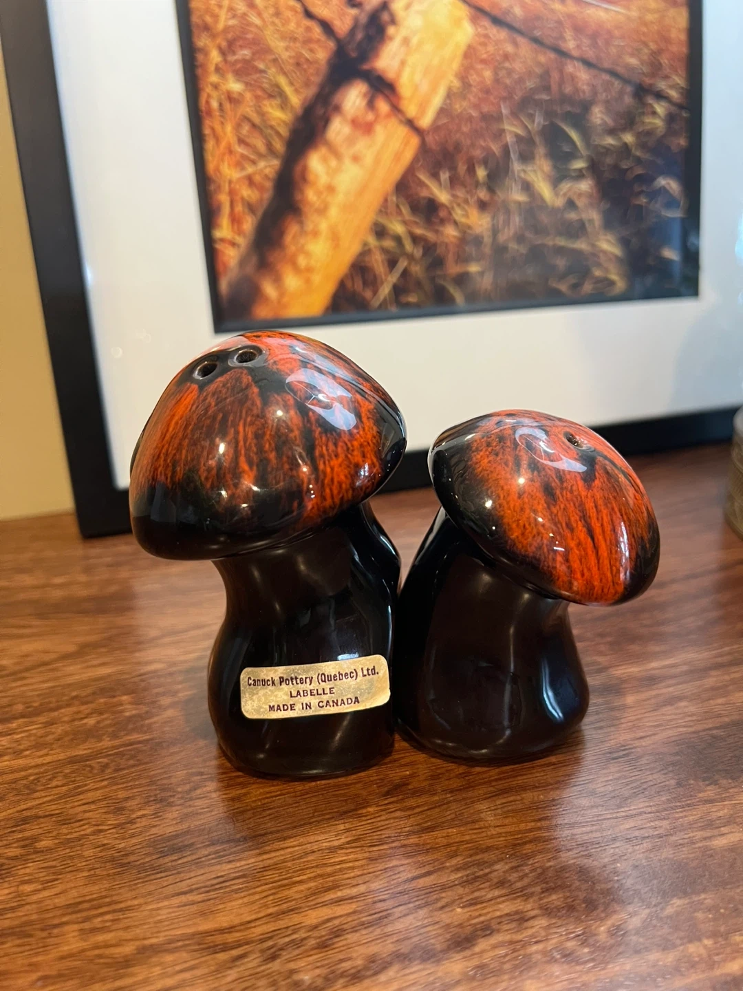 Cute nesting mushroom-shaped salt and pepper shakers from Canuck Pottery (Quebec) Ltd