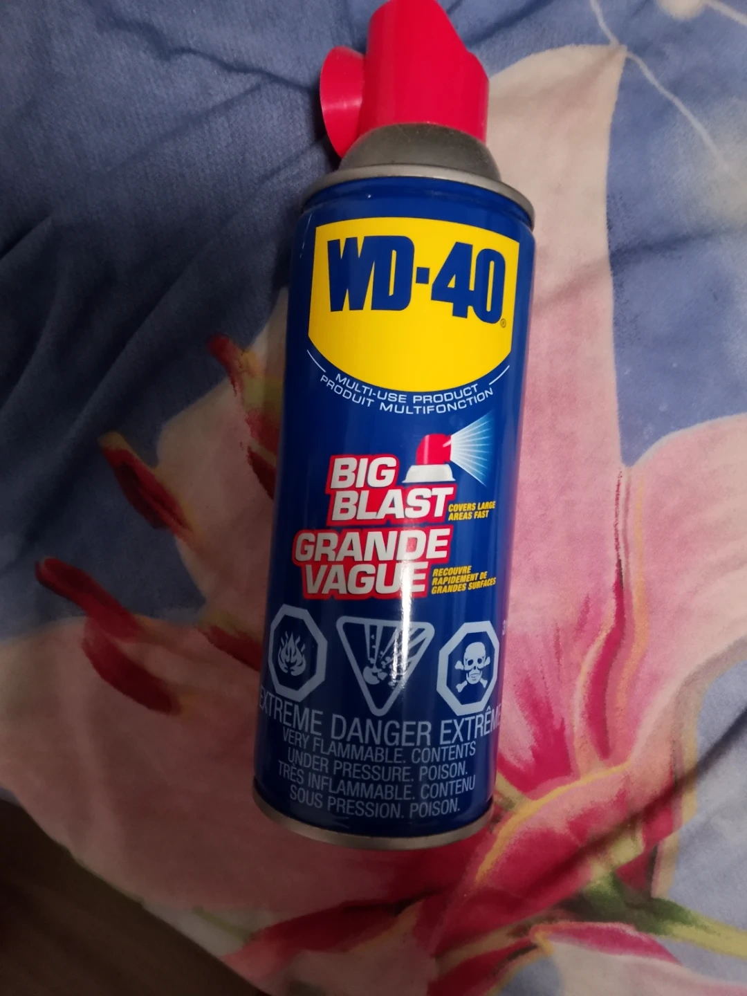 This is a can of WD-40 Big Blast multi-use product. It's a flammable spray that covers large areas fast. Contents are under pressure and poisonous.