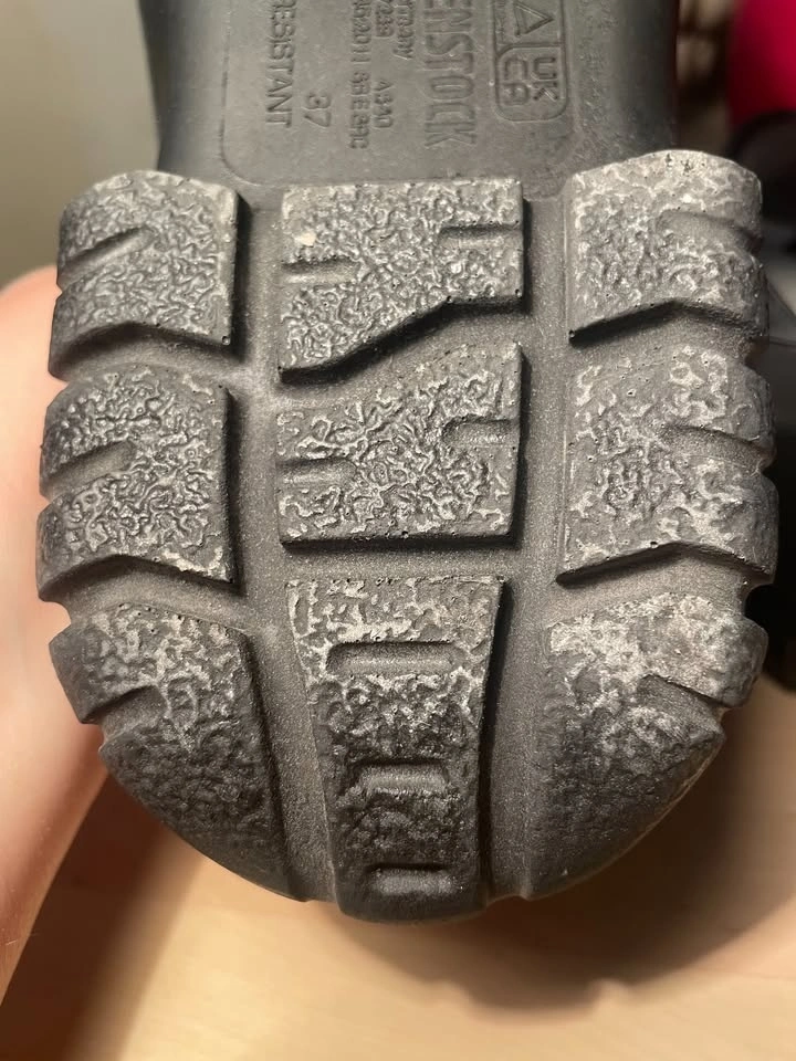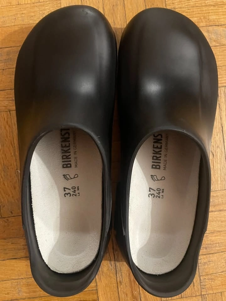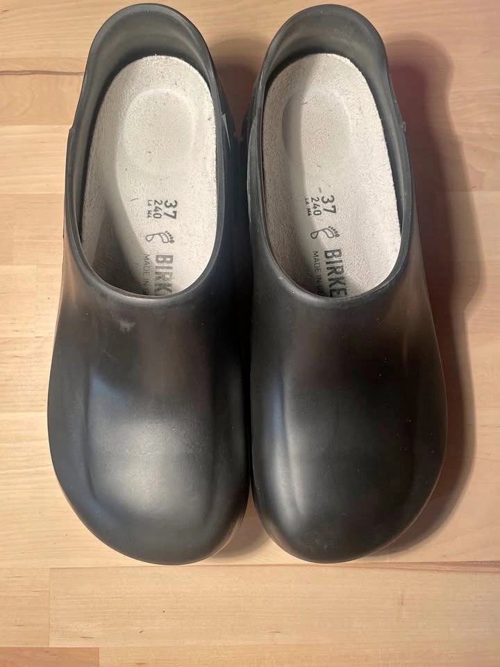 These Birkenstock A 630 PU clogs were only worn a few times. I found they fit a bit long for me, so I'd suggest they might be better for someone who wears a US 38 or a US 37 with thicker socks. I personally prefer a 235mm size since I don't wear thick socks. It's really best to try them on to see if they work for you!