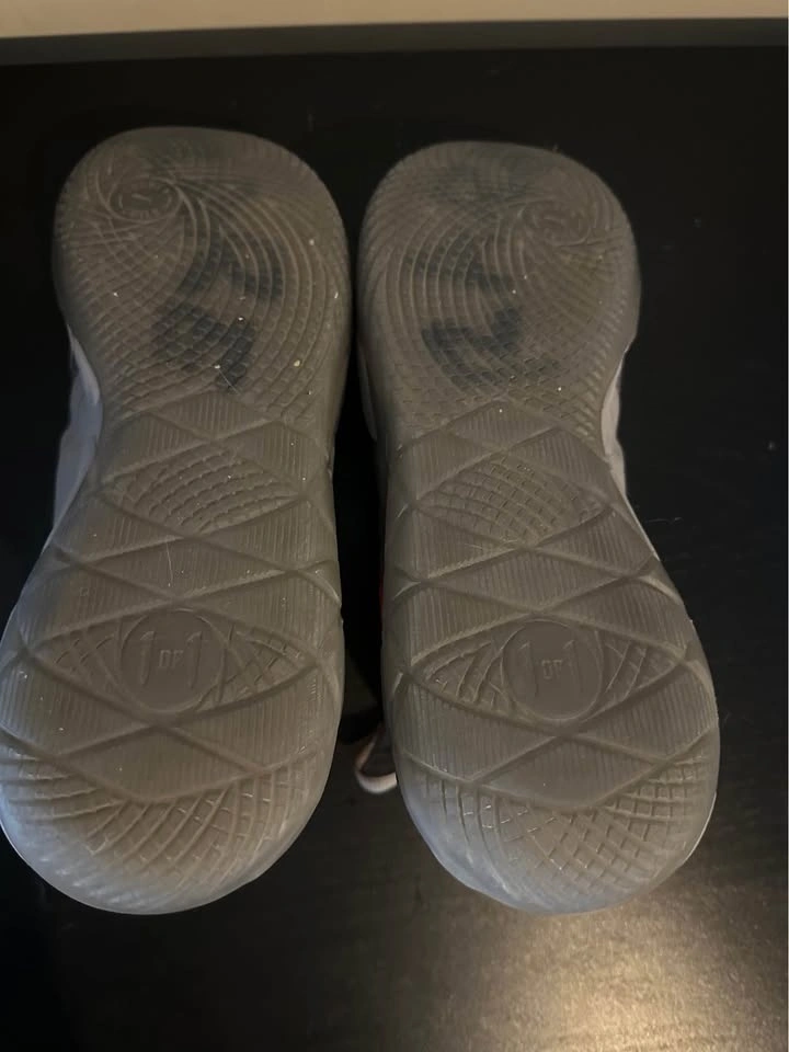 This is the first signature basketball shoe for NBA star LaMelo Ball. The "Rock Ridge" edition features a grey mesh upper with "Red Blast" accents and signature wing embroidery around the collar.